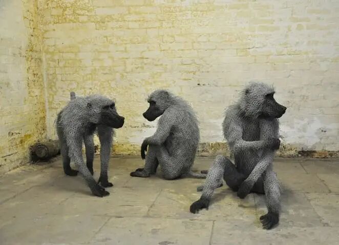 狮子、老虎、黑熊、猴子......肯德拉·哈斯特俨然用钢丝创作了一个大型野生动物园,每一个都仿佛有着呼吸般的生命感,艺术家直言,自己就是在用一种静态的3D形式,来创作鲜活的主体,不管是动物的外形,还是神态、动作,都尽可能地与真实生活着的动物完全一样。