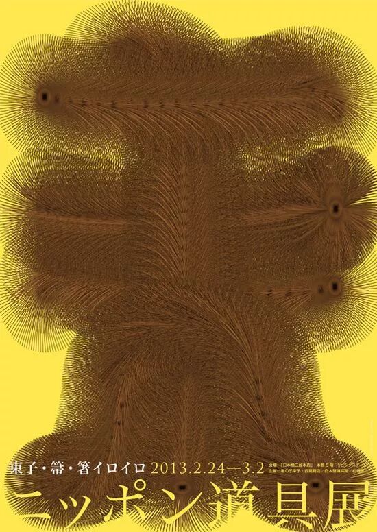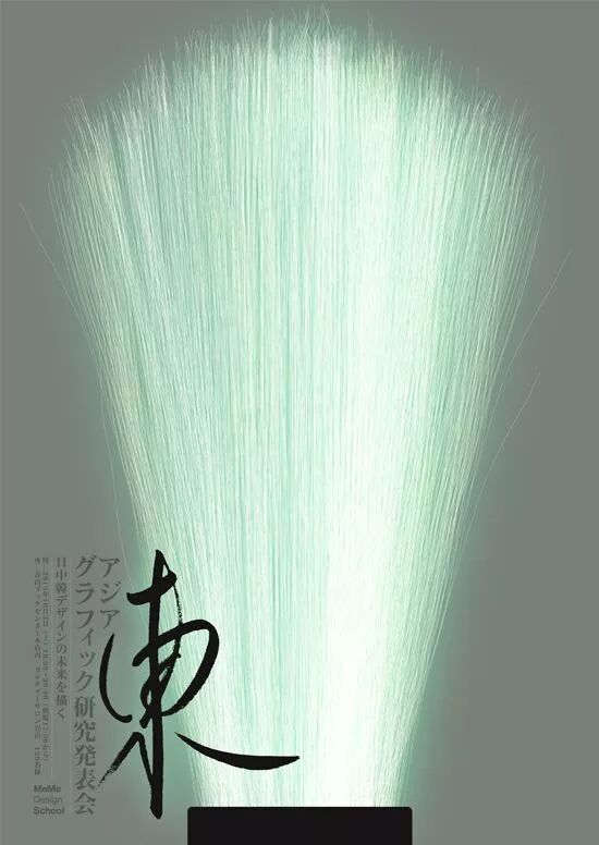 这是2013年东亚的设计师们齐聚一堂,探讨东方思想与美学的研讨会海报。从东方审美意识的角度出发,通过毛笔刻画主题的作品。(毛笔是东方人文及美学的一种象征)