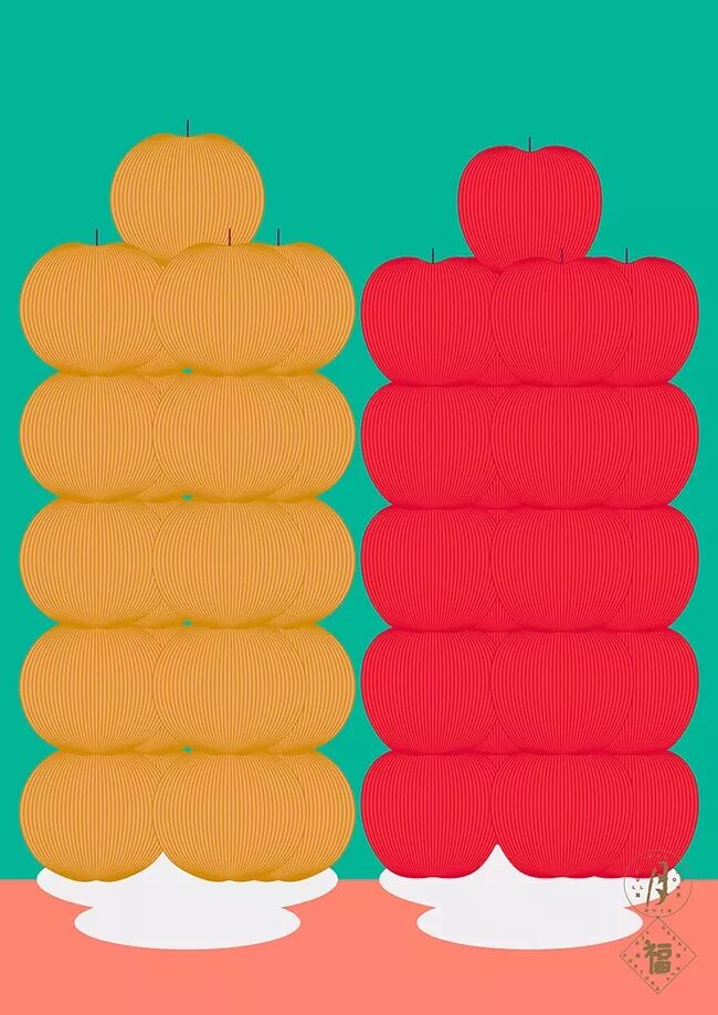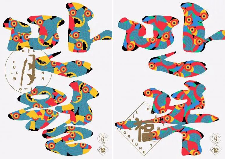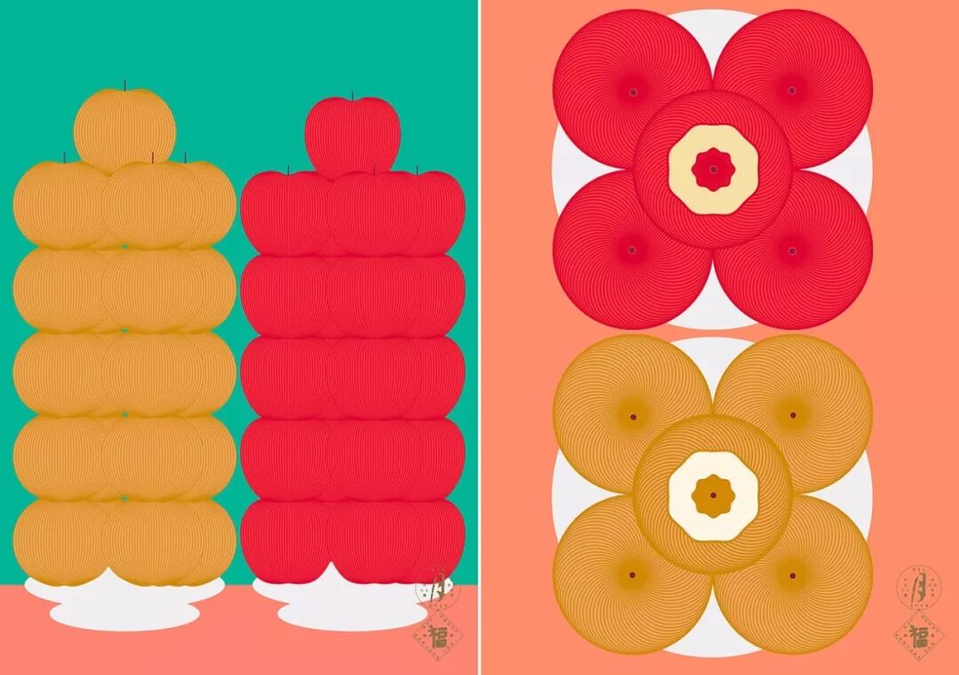 还有Chae Byung-Rok以中秋“满月万福”为主题的海报设计。以东方美学的方式呈现万月的形态,将其视觉化。通过圆头饭、苹果、梨、柿饼等中秋食品、玉春糖、西瓜果冻等高级食品,表现出和谐与丰富的元素。