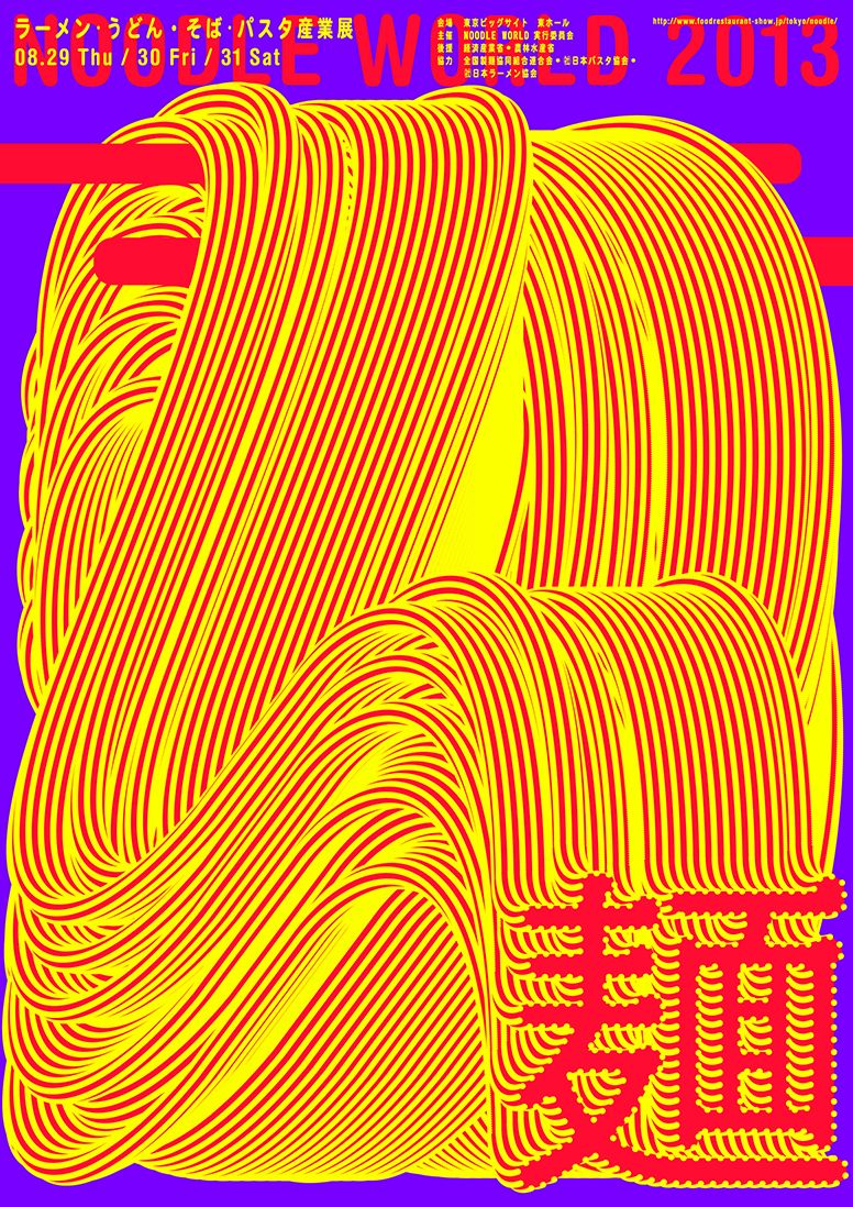 面条世界Noodle World 2013是日本(麺)博览会的海报,也是Chae Byung-Rok最喜欢的一件作品,它优雅地展示了面条从静止的筷子上飘落下来的画面。