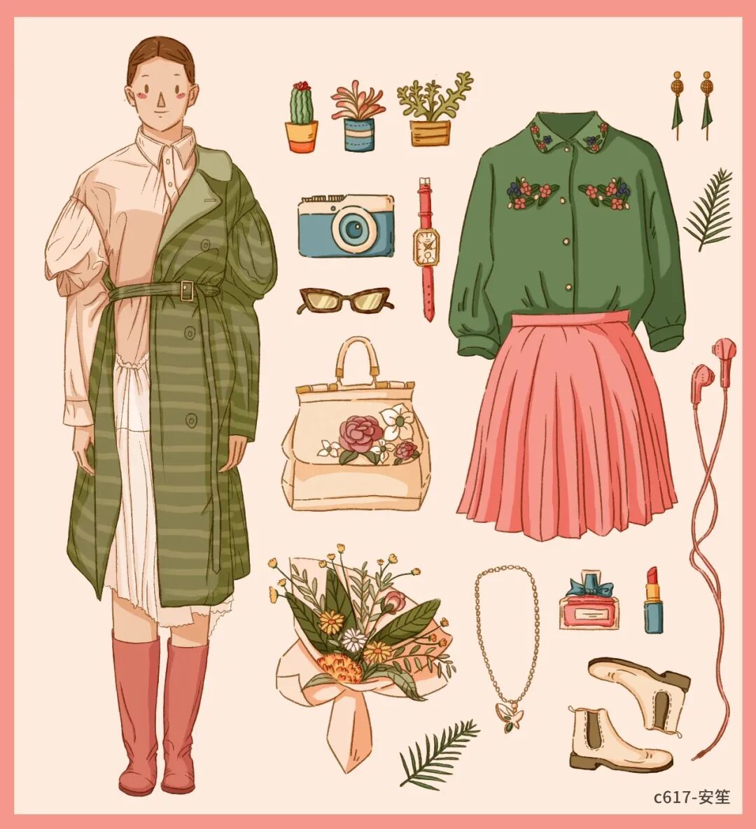再加一些可爱的单品,整个人更加special~