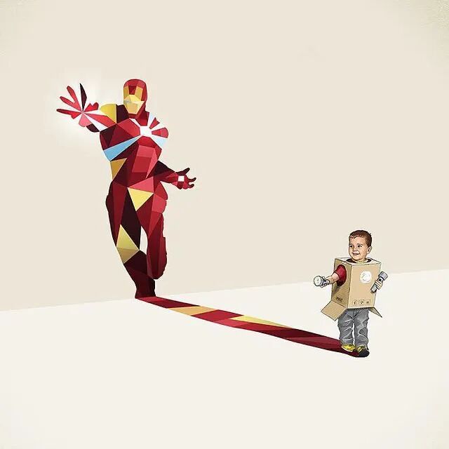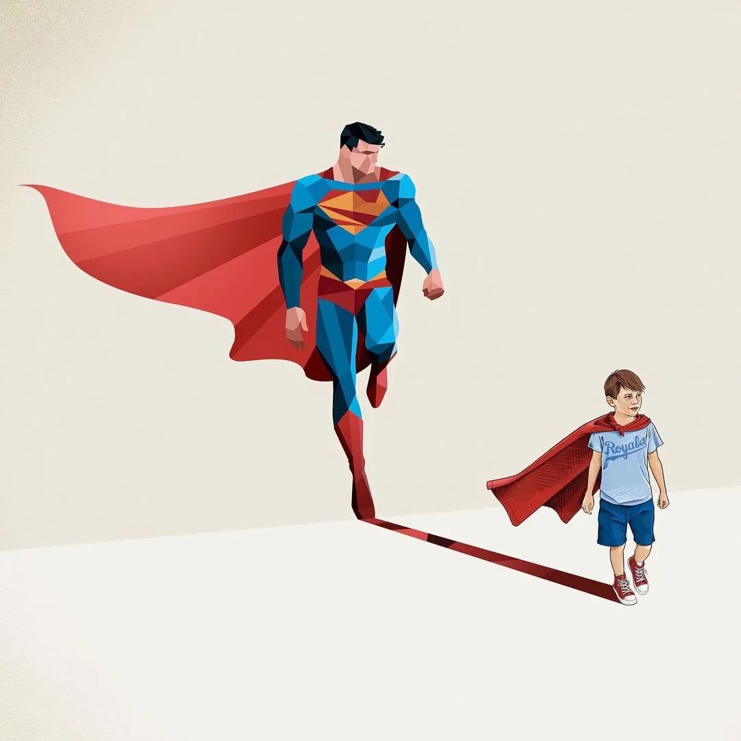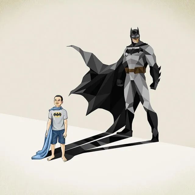 插画的影子投射孩子的梦想,你的童年,是否做过超级英雄梦?