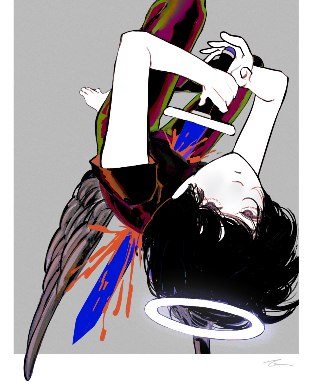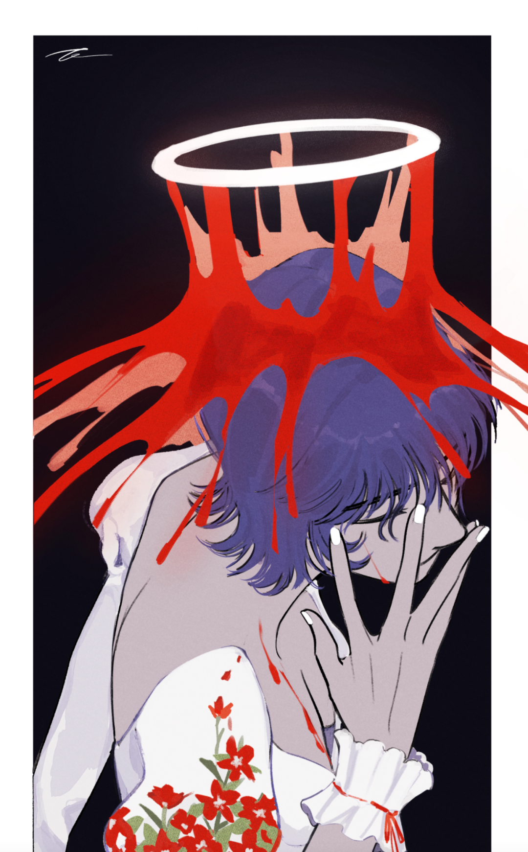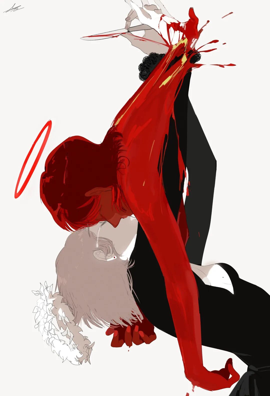 鲜血和利刃是 ZQ 作品两个不可忽视的核心创作因素:它们在大黑大白的色块之中产生强烈的视觉冲突,更常常出现天使之翼、天使光环、十字架等宗教意味强烈的元素,在东方风骨上加入西方神秘,有独一无二的迷人。