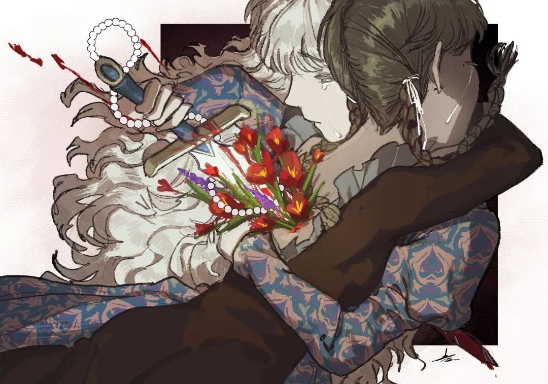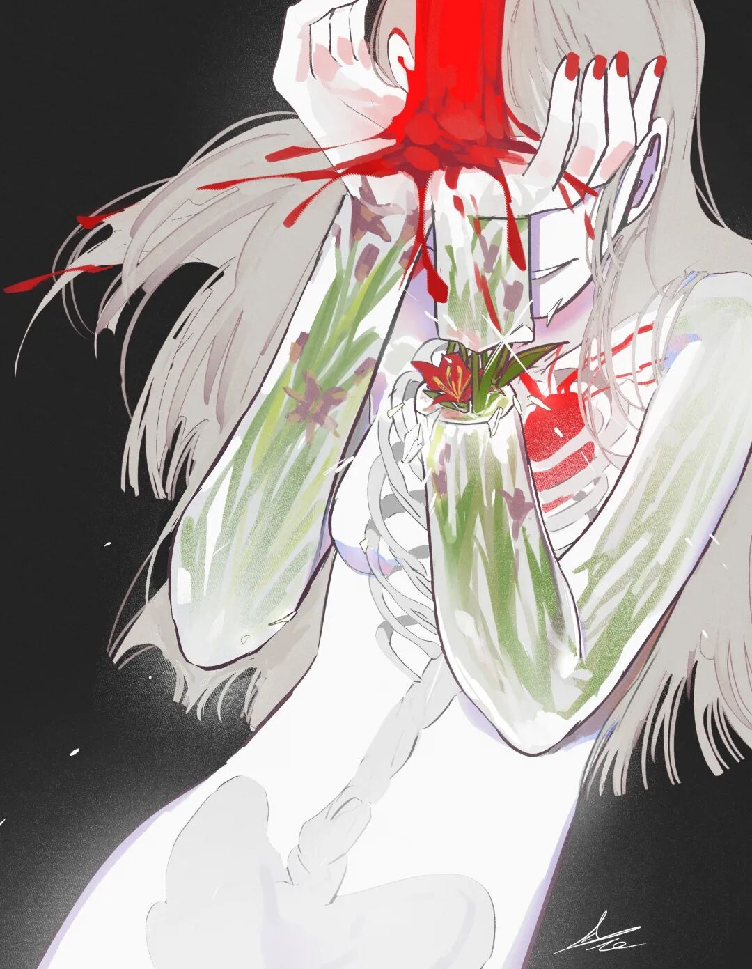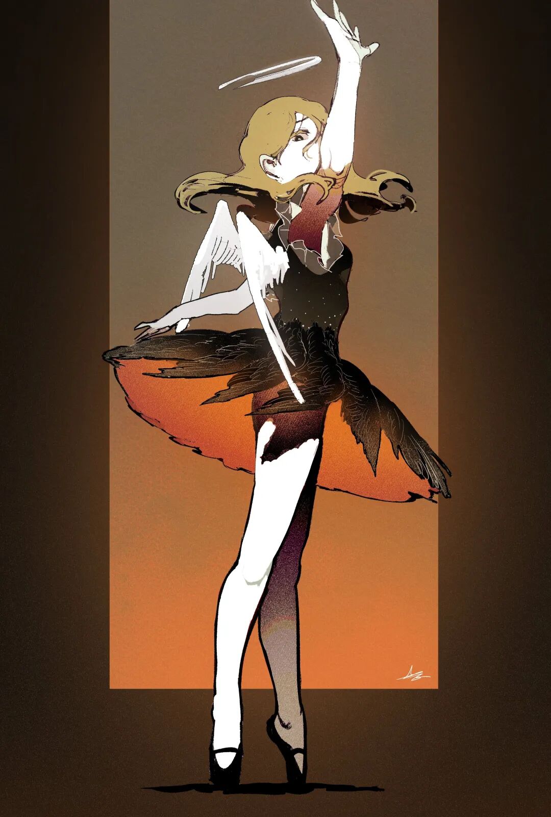 鲜血和利刃是 ZQ 作品两个不可忽视的核心创作因素:它们在大黑大白的色块之中产生强烈的视觉冲突,更常常出现天使之翼、天使光环、十字架等宗教意味强烈的元素,在东方风骨上加入西方神秘,有独一无二的迷人。