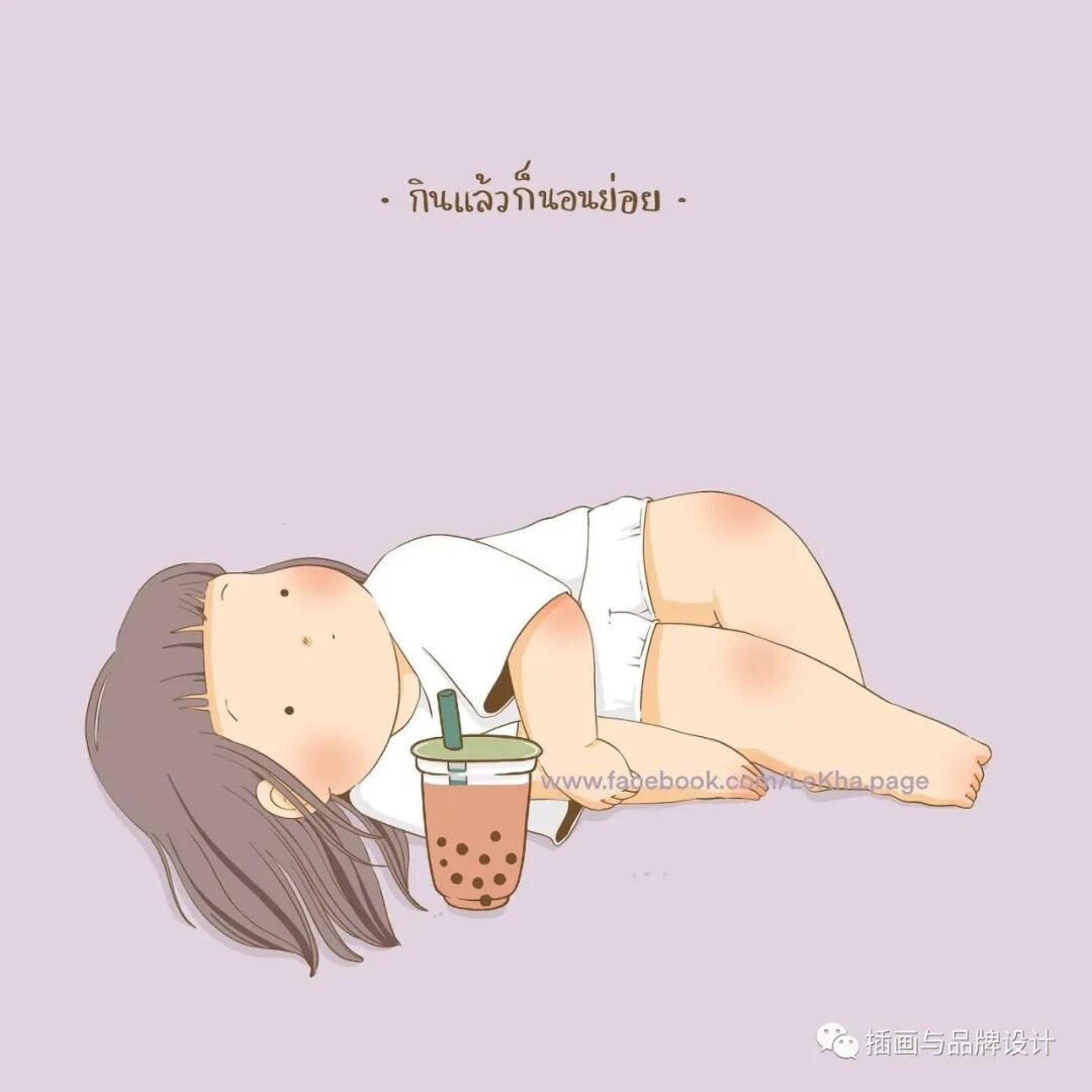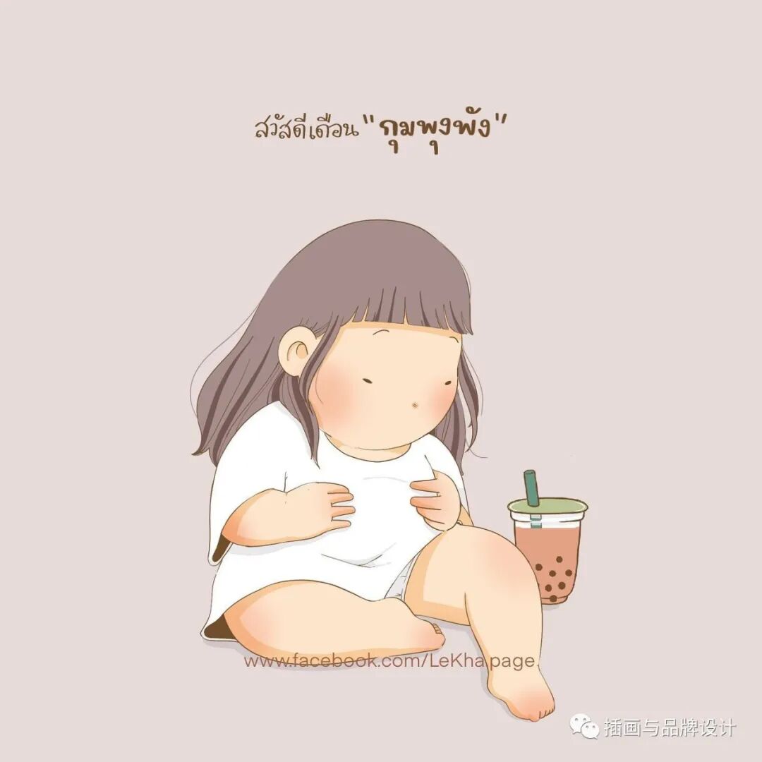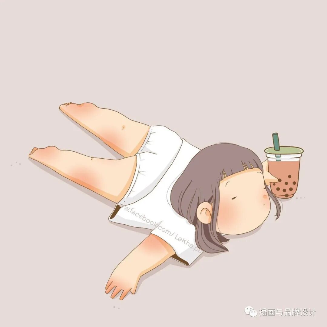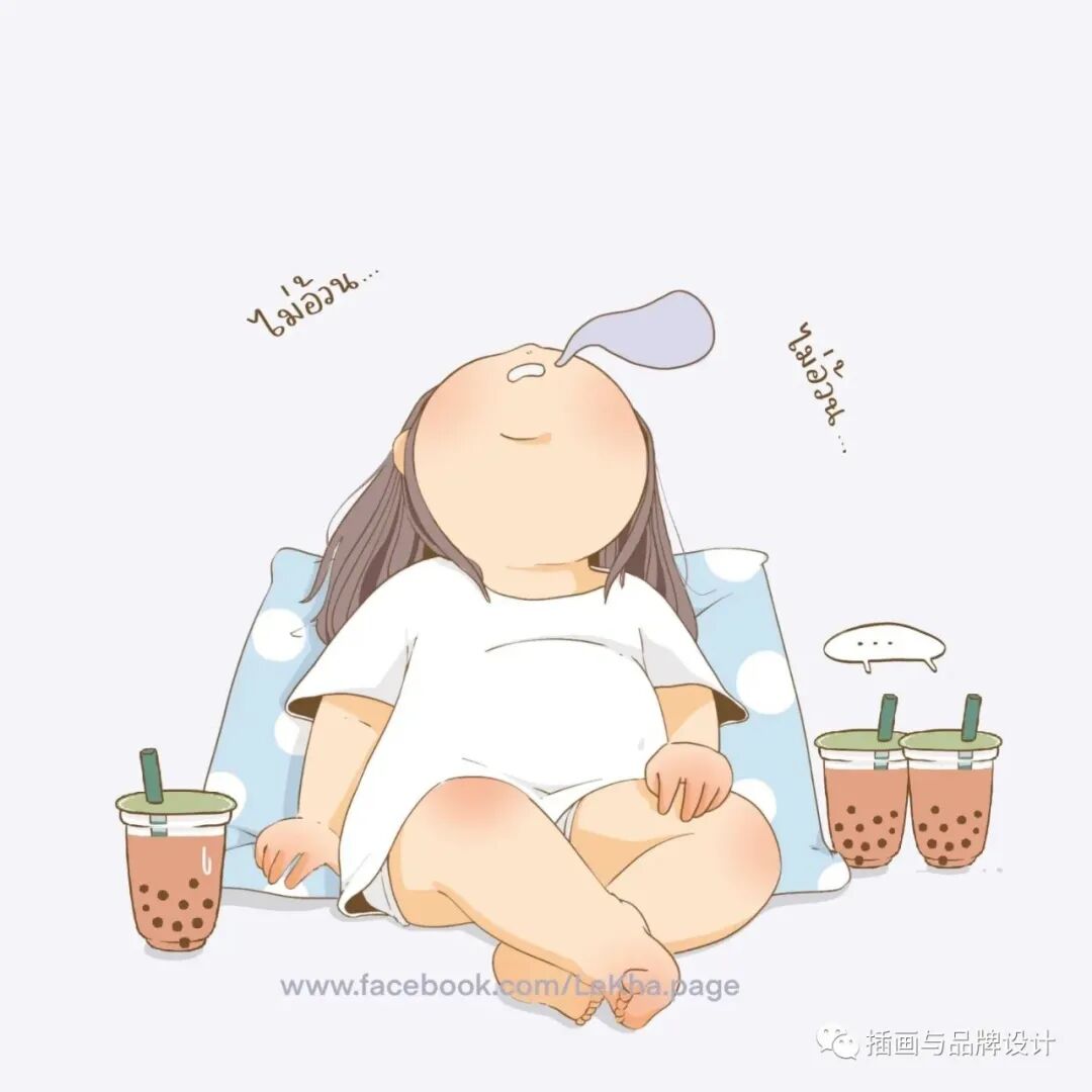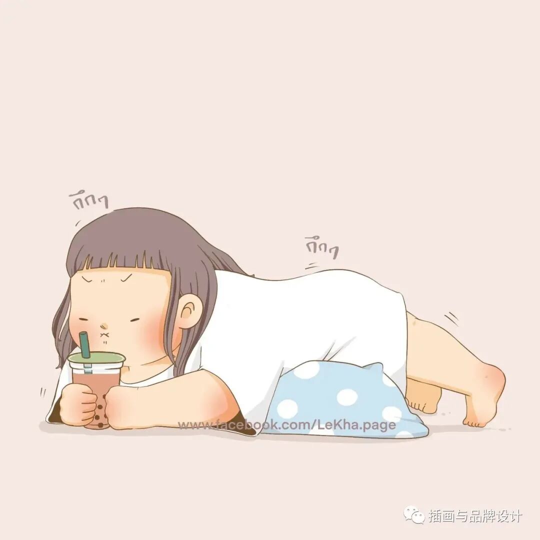 /插画丨超软萌可爱的胖女孩日常,最好奶茶、炸鸡啤酒,画风清新治愈