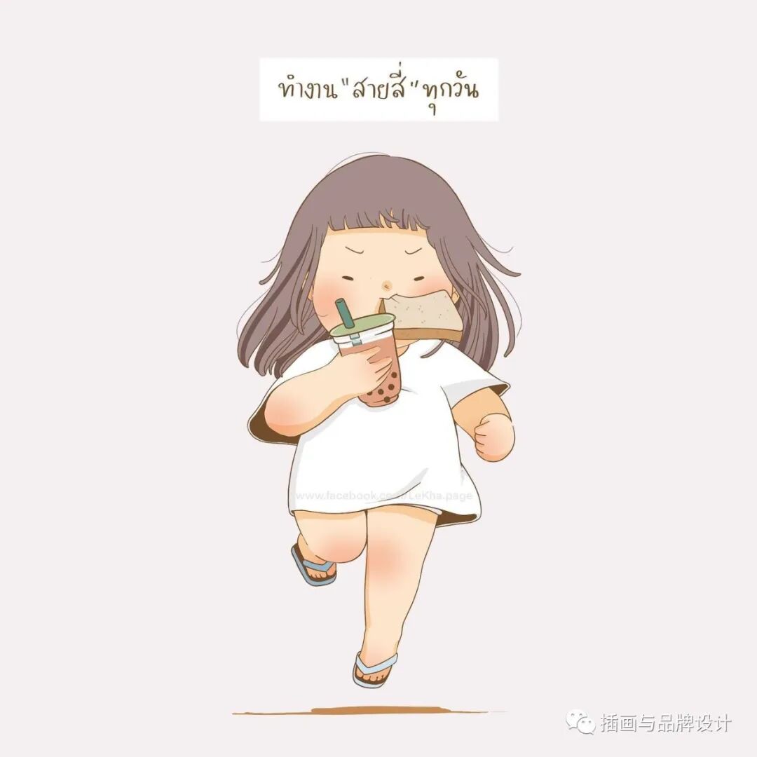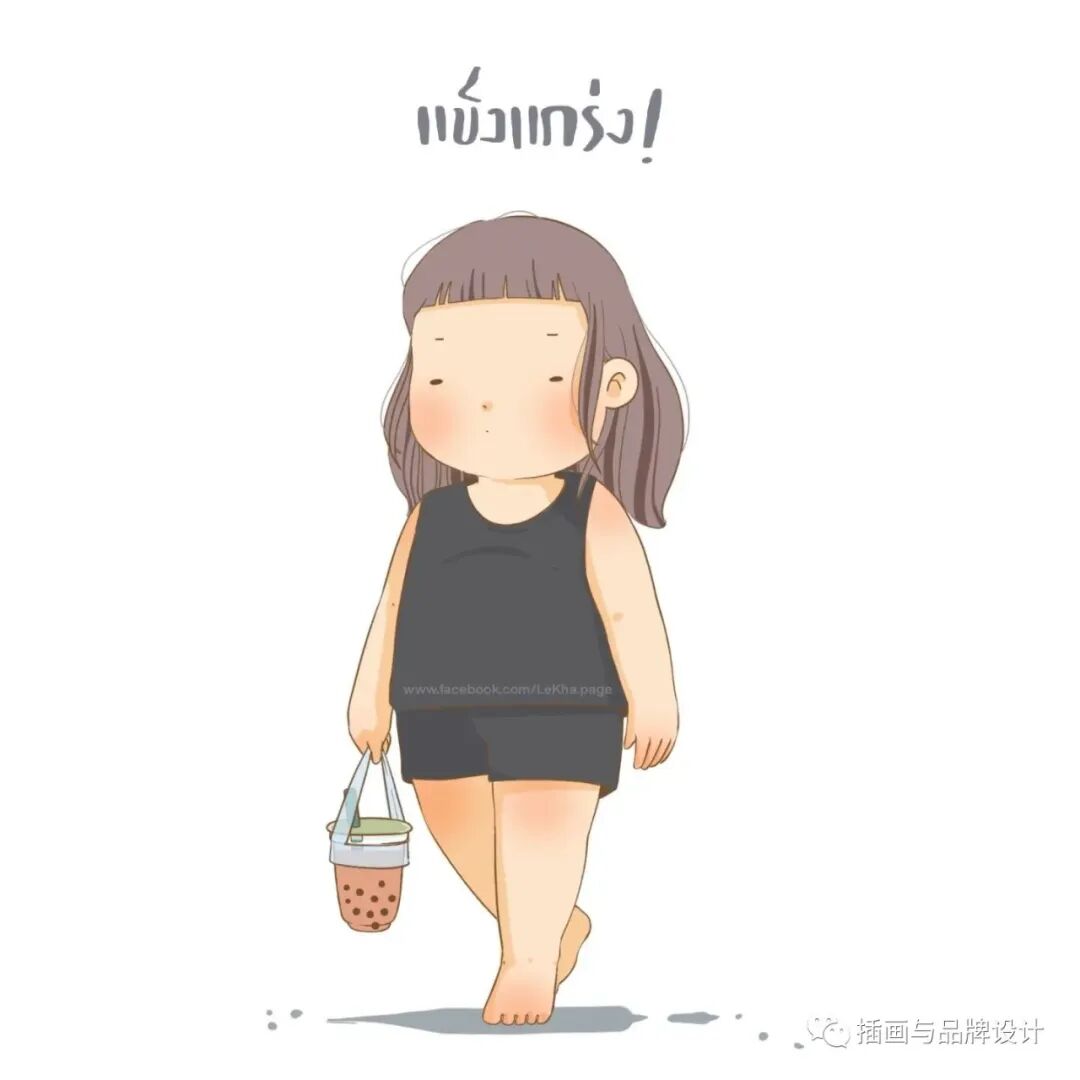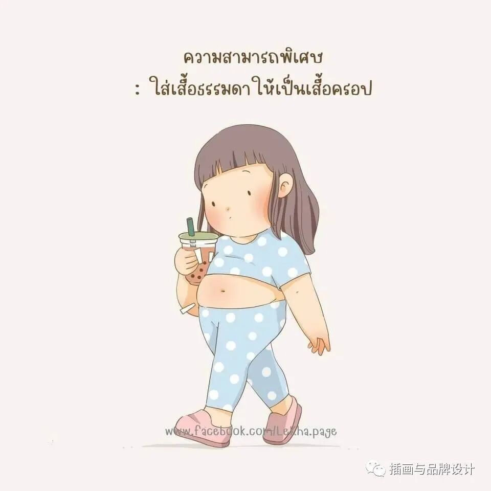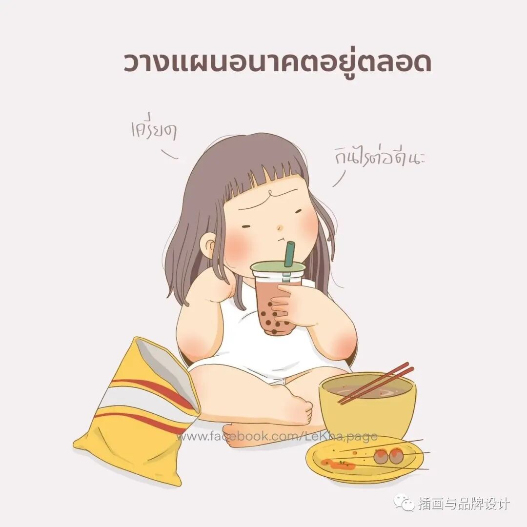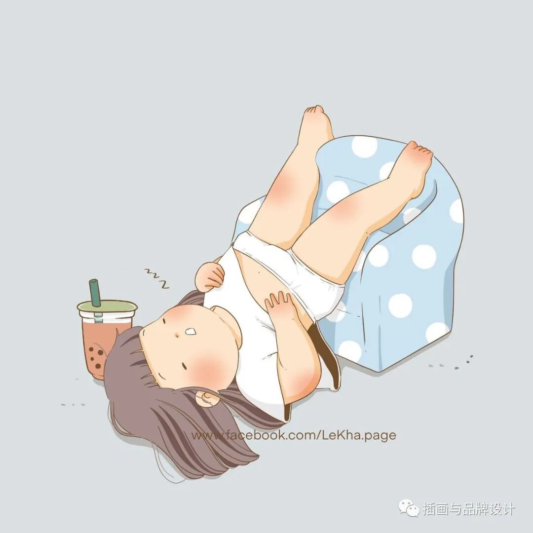 /插画丨超软萌可爱的胖女孩日常,最好奶茶、炸鸡啤酒,画风清新治愈