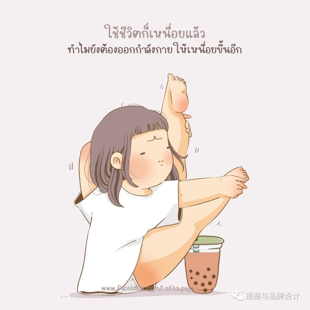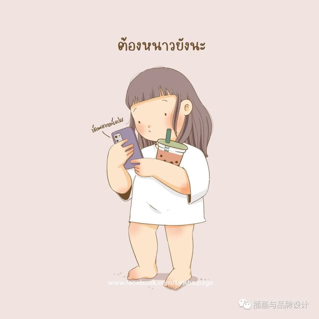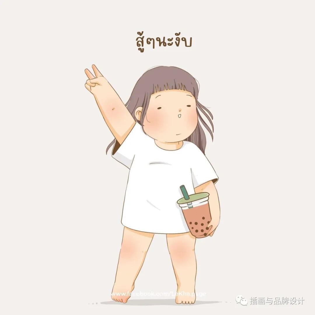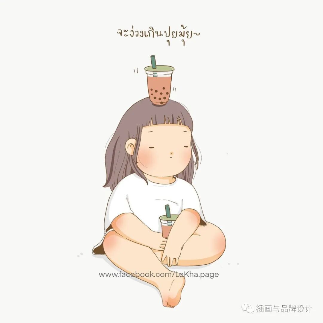/插画丨超软萌可爱的胖女孩日常,最好奶茶、炸鸡啤酒,画风清新治愈