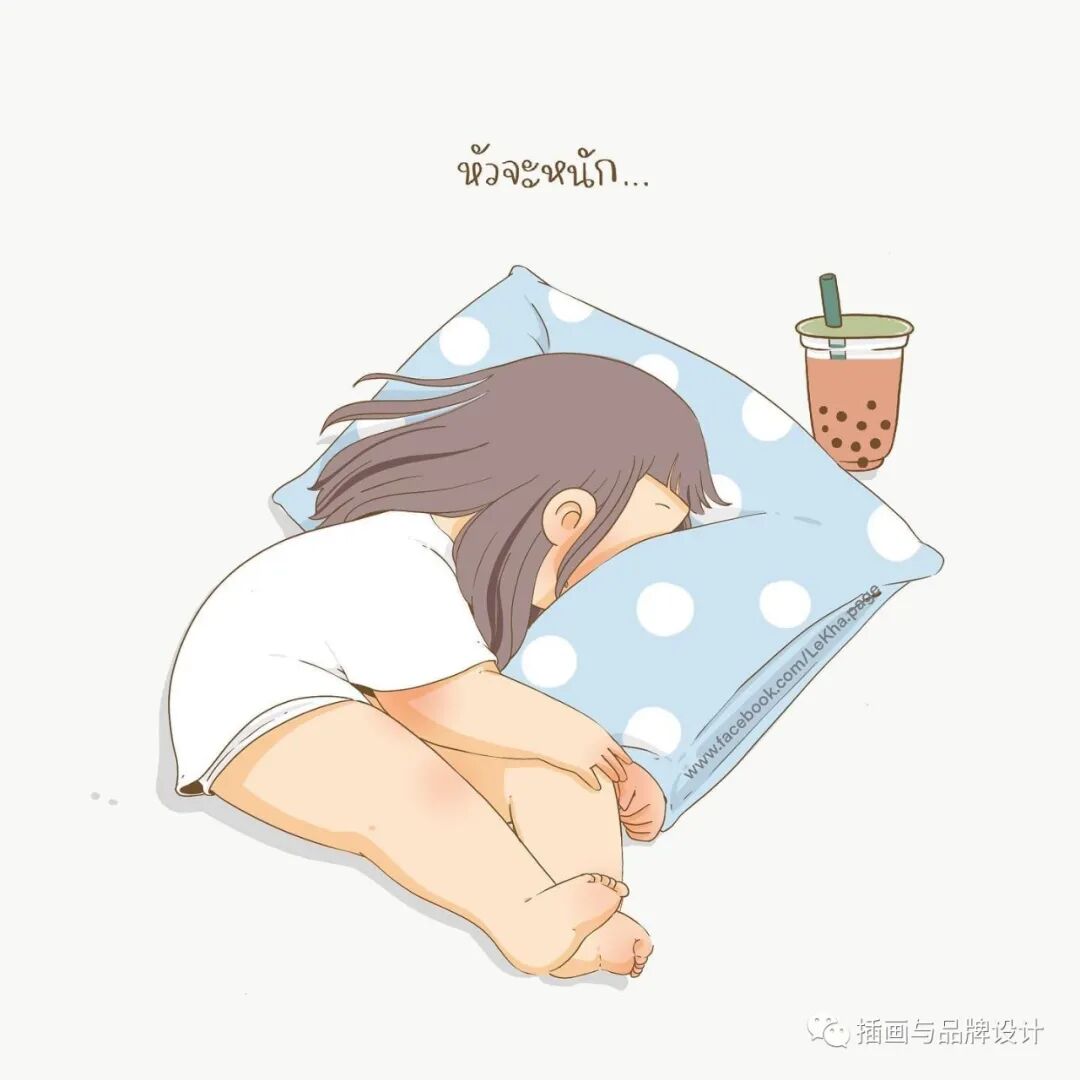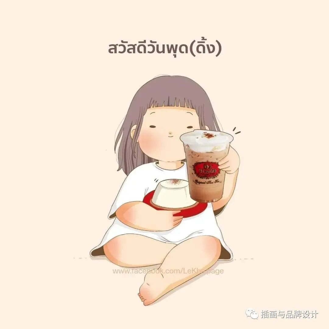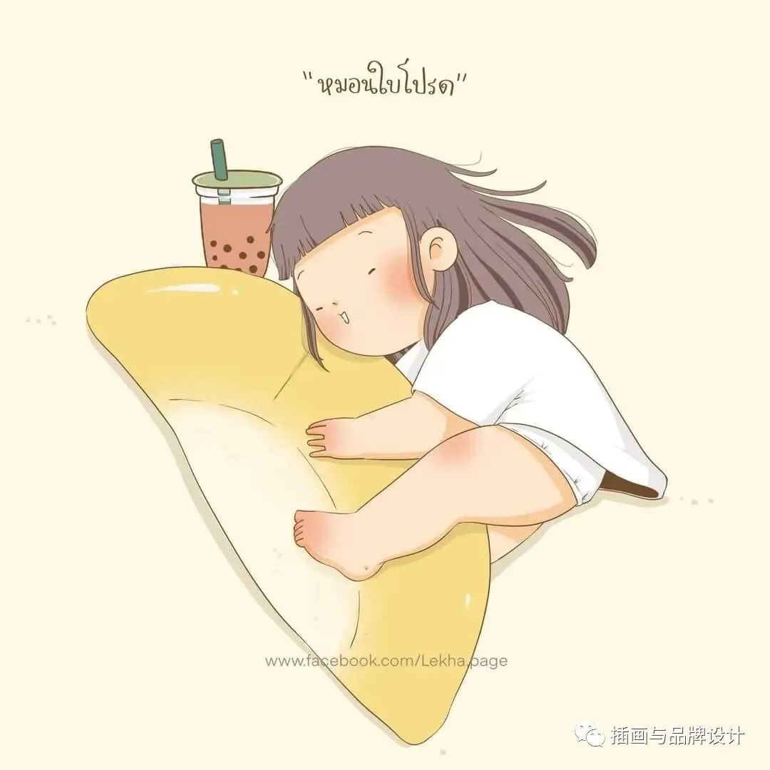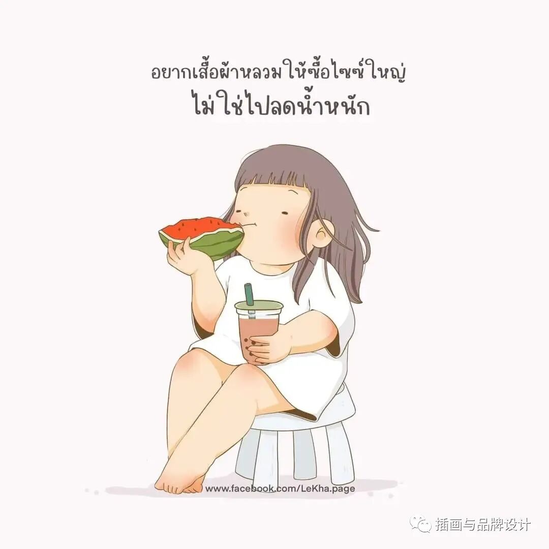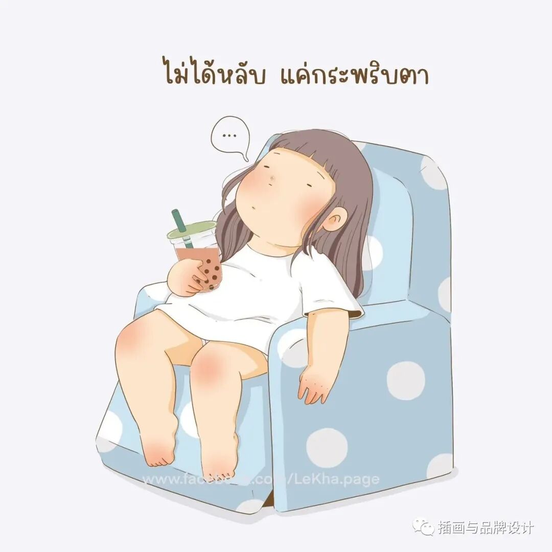 /插画丨超软萌可爱的胖女孩日常,最好奶茶、炸鸡啤酒,画风清新治愈