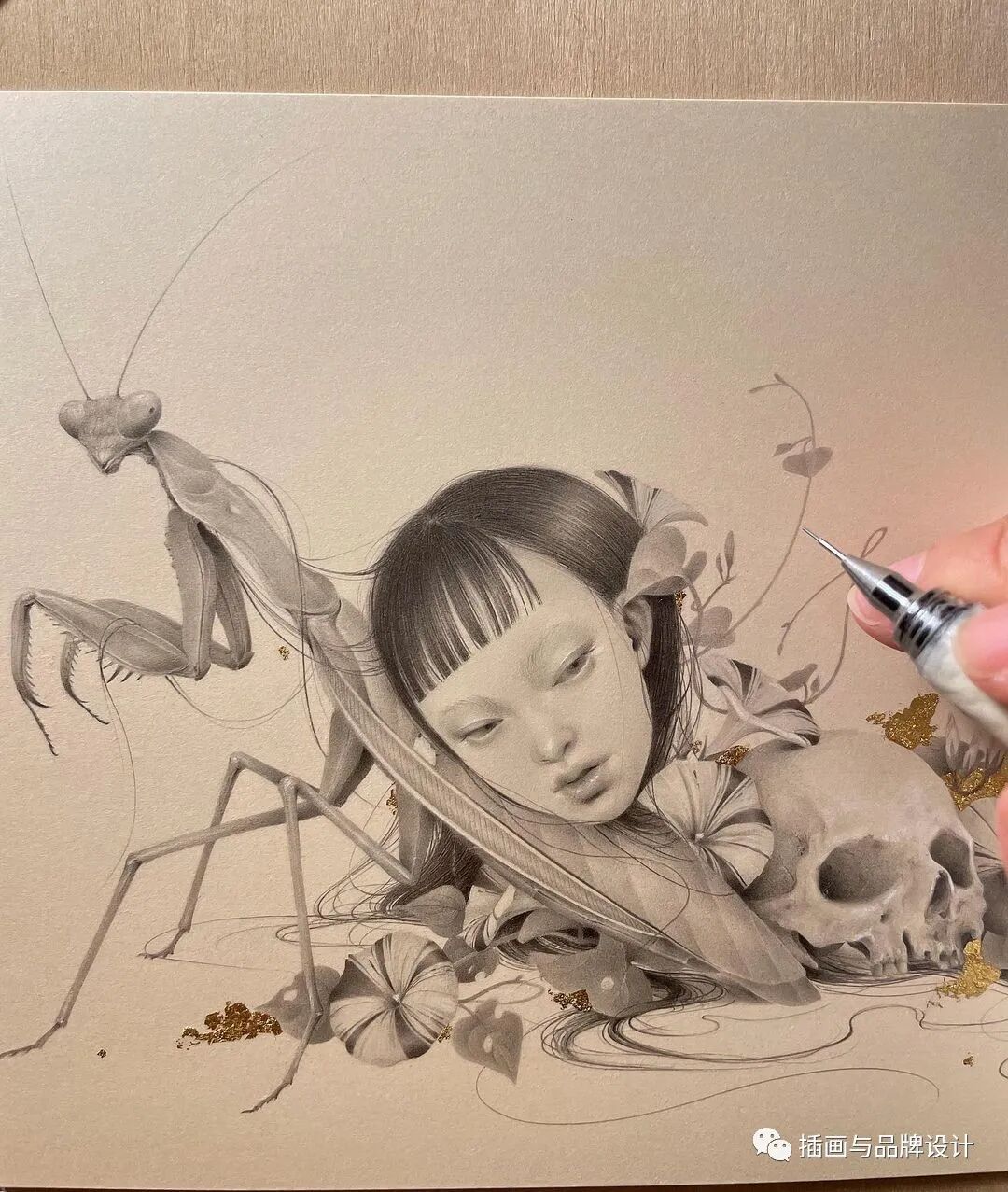作品集2023-07-14 插画丨惊人的细节感,栩栩如生的年轻少女,画面生动又柔和 何大大推荐|总第3609期| Ozabu ins:ozabu 来自日本的艺术家运用石墨结合暖色调纸张 描绘出生动又柔和的图像 并以超现实的笔触勾勒出 各色神秘的女性 与自然世界融合的充满幻想作品 Ozabu受民间传说日本神话和漫画等 视觉传统影响以自学成才的绘画细节技能栩栩如生的风格制造出 令人难以置信微妙线条笔下诞生的肖像 如同鬼魅般拥有美丽到毛骨悚然的形象 但又十分引人注目和精致 Ozabu目前以空灵的人物 被唤起的鬼魂或精神加之 他们在孤立中被赋予的力量中 加入了懒洋洋的植物、鸟类、昆虫 以及其他看起来像人体延伸的生物中间 形成各种富有感情色彩的具象绘画 Ozabu喜欢在表达年轻女性题材中 注入叙事和境界内容 在翅膀、鸟头、昆虫和繁茂的植物群庇护下 诞生无法言喻的内容激发观众想象力 所以在作品创意中提炼出了内心最黑暗之处的画面 保留葬礼和离别的场景 End 本文来自微信公众号“插画与品牌设计”(ID:sheji-520)。大作社经授权转载,该文观点仅代表作者本人,大作社平台仅提供信息存储空间服务。 TAGS: 插画画面线条绘画 相关文章Kleoniki Andr…这是大王Day.281获奖作品《2020最佳图书…精选头像|搞怪来袭!安东尼奥·布埃诺 作品配色清新梦幻的场景插画,充…美国Jennifer Mc…【小鹏设计】设计小改/动力…【首发】地点空间丨打破空间…谢商家不坑之恩!只骗有钱人…