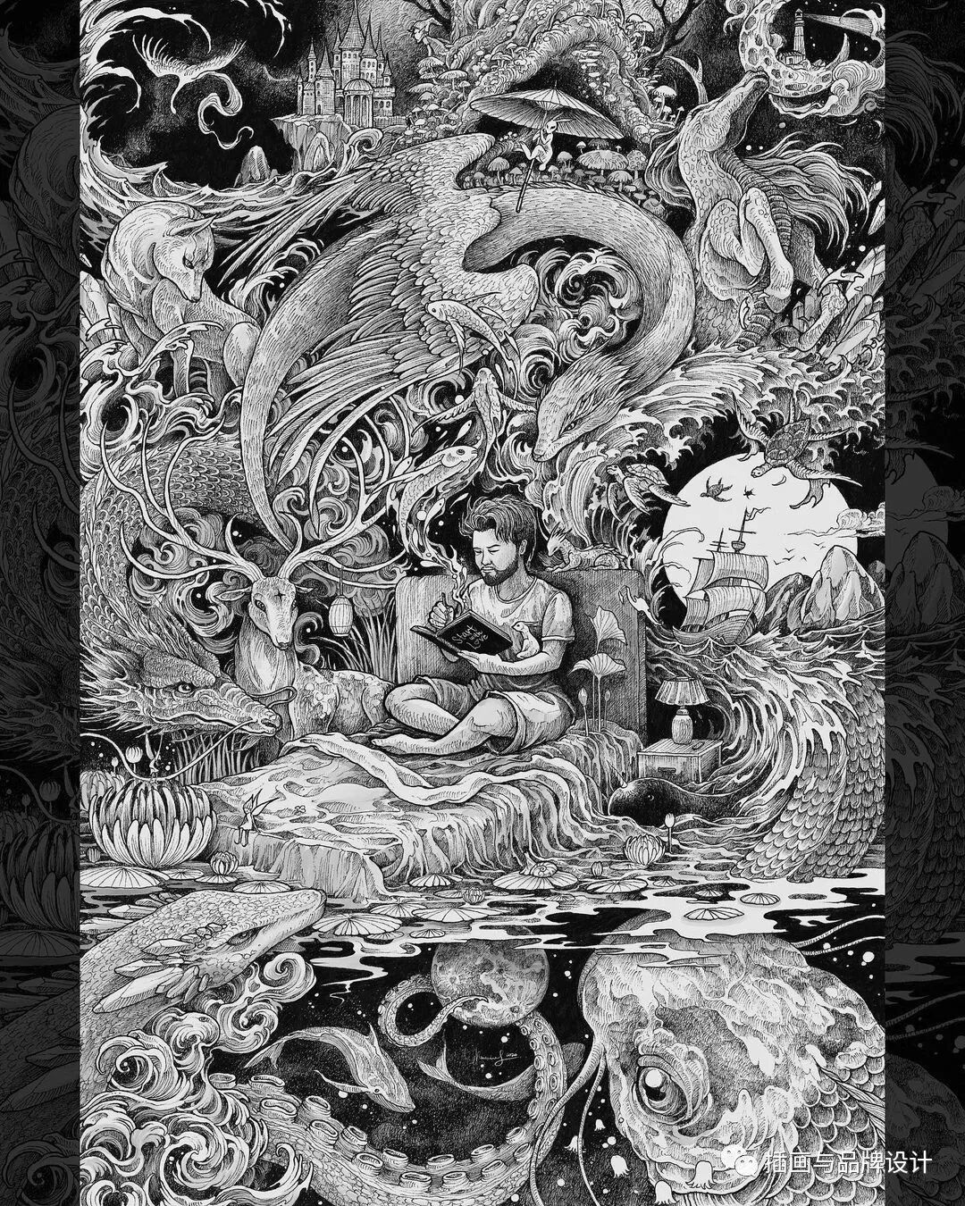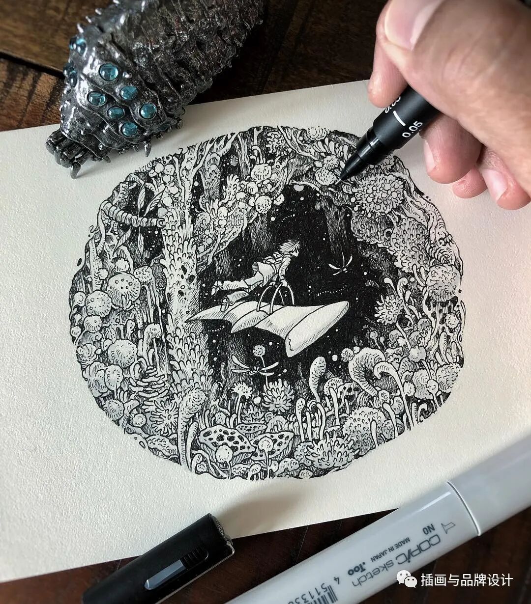 作品集2023-11-03 插画丨他用黑白插画掀起涂色书热潮,将大胆优雅与卡通风融合,精细感十足 K E R B Y • R O S A N E S ins:kerbyrosanes 来自菲律宾的插画师 擅长用墨水、细线笔和记号笔 描绘精细、个性又场面丰富的黑白画 目前受到各种设计博客、国际杂志和在线艺术 社区的认可后,他称为了一名兼职自由职业者 kerbyrosanes作品创作收到 成长环境影响包括周围环绕的稻田、河流和山脉 在他的黑白宇宙中呈现出异想天开 幻想的转折,并以详细的插图使得他 获得了全球品牌的项目 并在多个展览、杂志、网站和电视节目中出现 同时,受大自然的影响驱使他周游世界 并创作了带有传播各种环境问题的作品 kerbyrosanes在作品创作中融合了 极其发咋的设计并掀起涂色书热潮 将大胆和优雅与卡通风格融合 在传统插画上加注了自己的风格想法 kerbyrosanes在创作上结合了 多种截然不同的元素包括优雅、复杂 写实、俏皮、古怪、卡通以及强烈的对比性 同时,在内容加入了标志性的俏皮感 让人感受到一种风格的灵动和多变化性 本文来自微信公众号“插画与品牌设计”(ID:sheji-520)。大作社经授权转载,该文观点仅代表作者本人,大作社平台仅提供信息存储空间服务。 TAGS: 卡通插画黑白 相关文章Kleoniki Andr…这是大王Day.281获奖作品《2020最佳图书…精选头像|搞怪来袭!安东尼奥·布埃诺 作品配色清新梦幻的场景插画,充…美国Jennifer Mc…【小鹏设计】设计小改/动力…【首发】地点空间丨打破空间…谢商家不坑之恩!只骗有钱人…