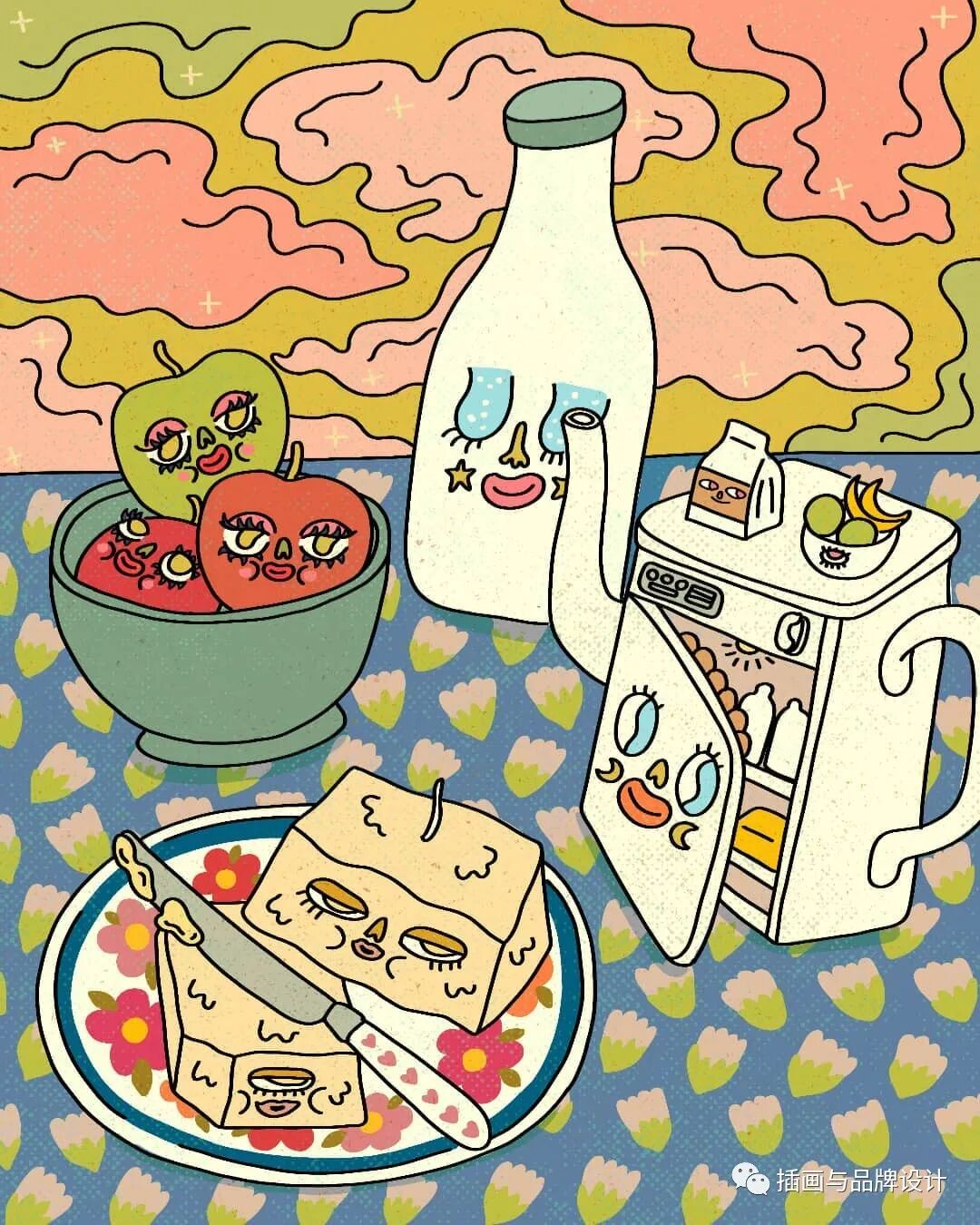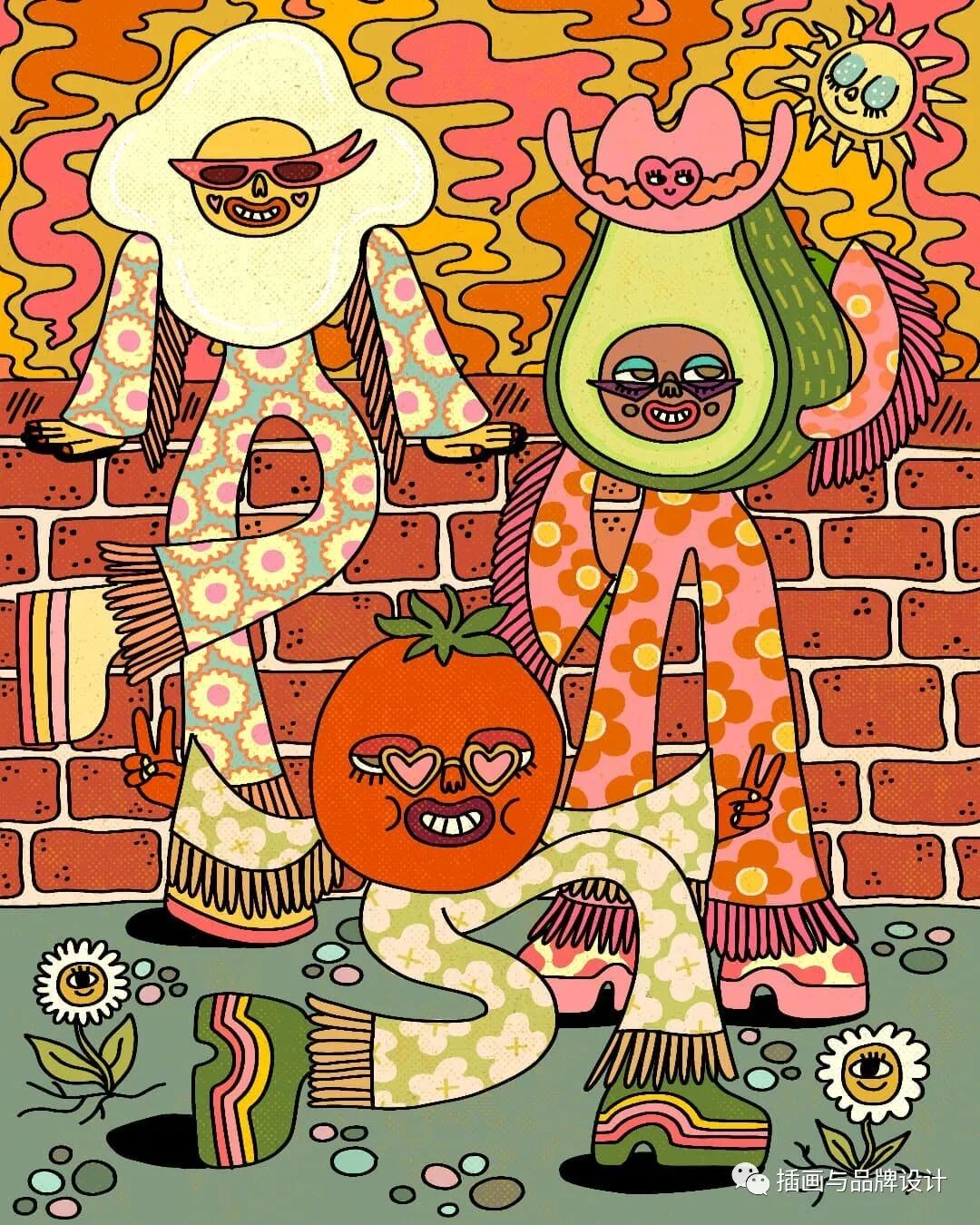 插画丨万物皆可拟人化,色彩缤纷鲜艳,画风幽默搞怪