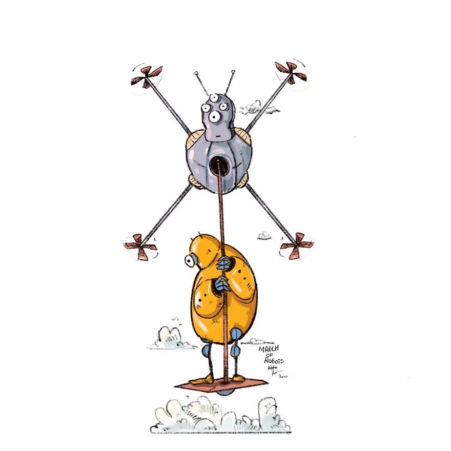 安纳达·梅农的绘画作品主要以自然、动物和社会问题为主,绘制机器人作品是第一次尝试,就连安纳达·梅农自己都没有想到,在经过一段时间绘制后,这些机器人作品每一个都十分有趣。虽然,这些插画机器人都小插图,但是,还是可以让人看到插画家精巧的设计。