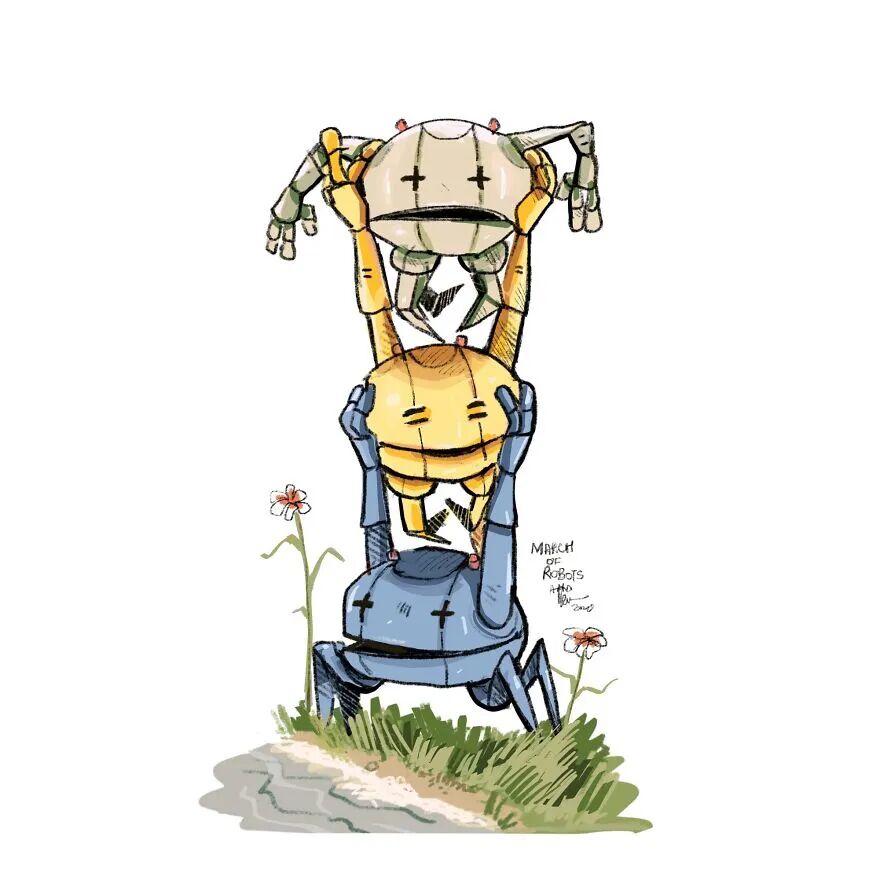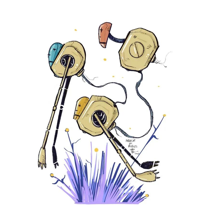 安纳达·梅农在2020年的时候,发现自己在舒适区停留了太久,有一些懒惰,创作热情也开始变淡,于是这位插画家开始寻找绘画挑战项目,因为自己并不擅长绘画机器人,所以安纳达·梅农就给自己选择了在一个月里,每天绘画一个机器人的挑战。