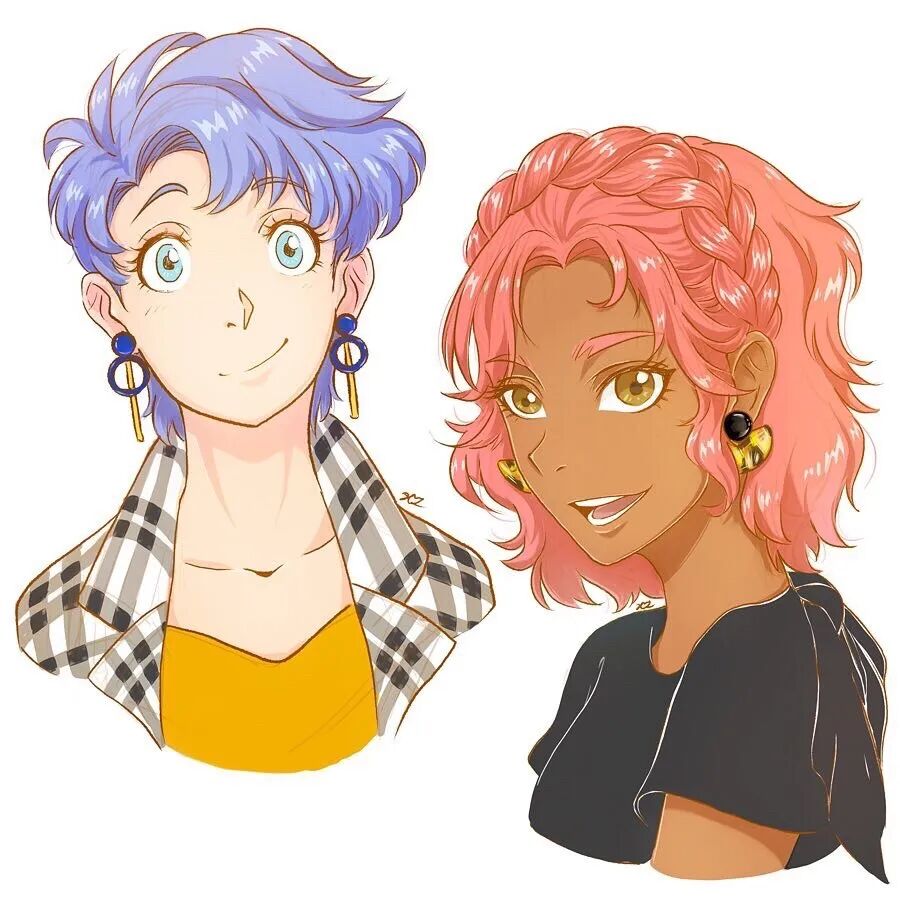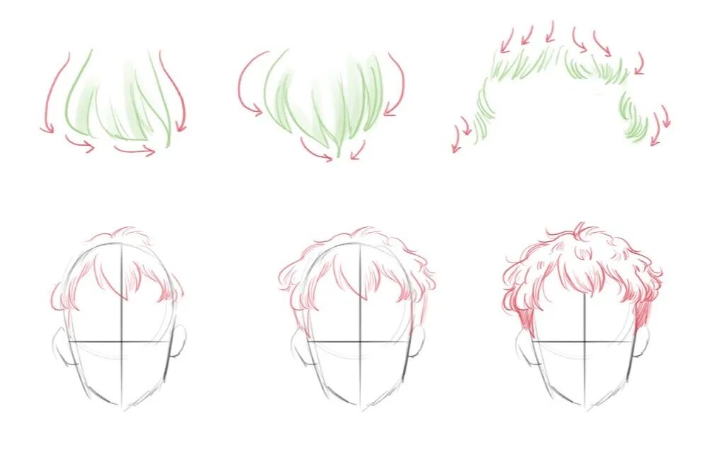 根据短发的类型,我们可以调整之前的各种发型来打造造型。在这种情况下,我们可以缩短笔触,如果发型很短,那么我们可以使用较小的形状和线条来创建轮廓。