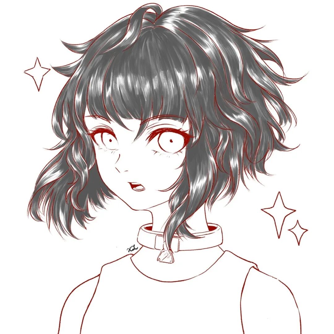 1.使用所需的发型轮廓创建头像的粗略草图。在这种情况下,我们将采用短而略带波浪的风格。