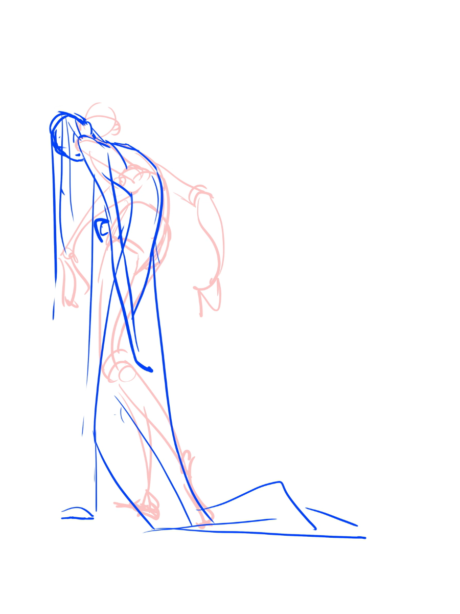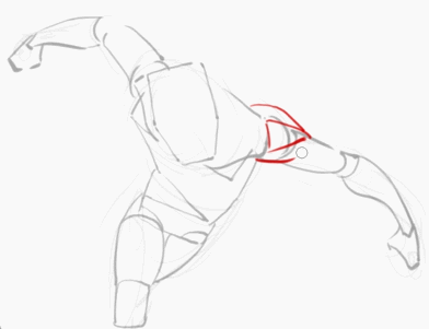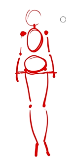 画完火柴人后,如果我们画不下去了,可以思考一下有没有将空间里的近大远小表达清楚了。因此,我们可以试着在火柴人身上画出横截面。