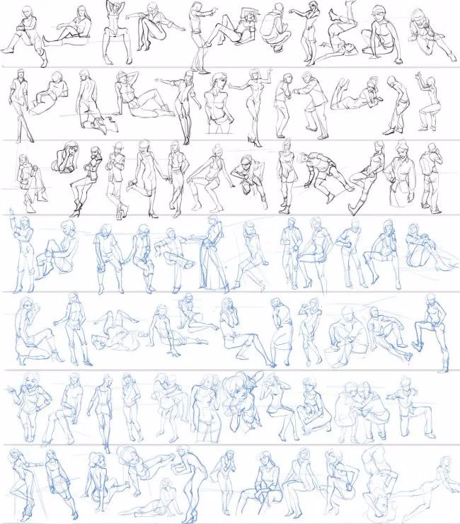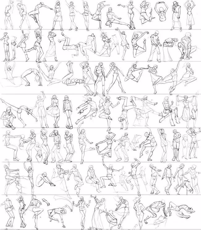 收集了非常多的这方面的素材突破,单个来看姿势动态有很多,大家空了的时候可以拿来在手绘本上练练手。
