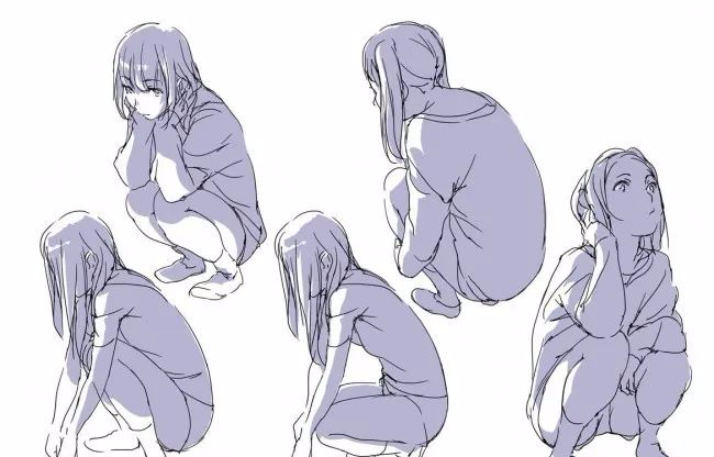 小编在给大家简单讲解一下蹲着姿势的画法,画头发是要注意观察头发的大概结构,确定结构在下笔,要注意细节,画出生动自然。