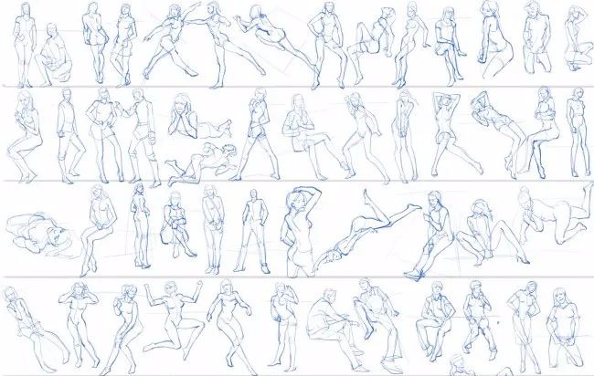 包括了难是女生,各种姿势、衣服、动作的感觉。虽然不是很具象,但是基本的感觉都出来了。作为参考依据和学习对象是十分合适的。搞熟悉了这些动态之后,下一步细部刻画反而简单。