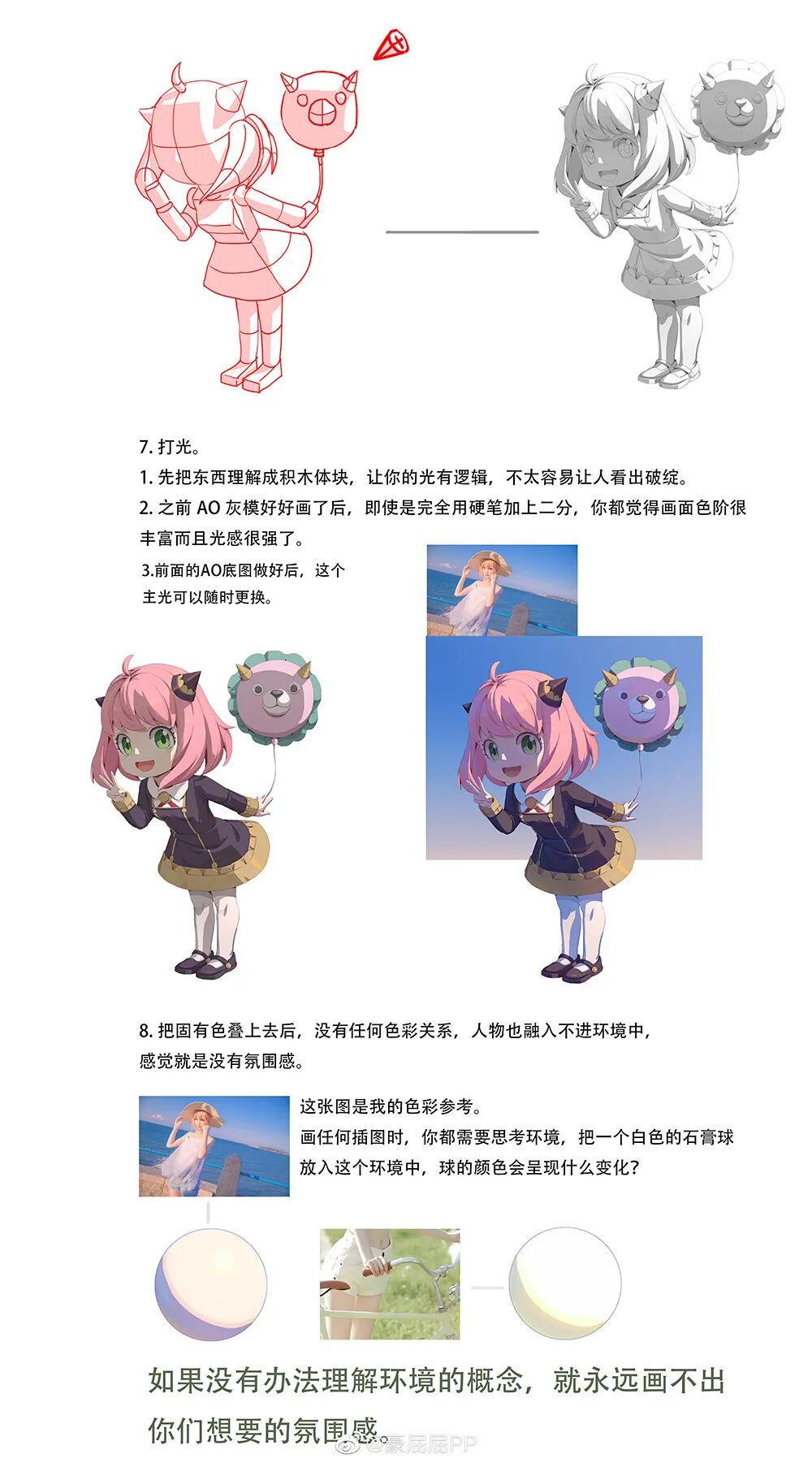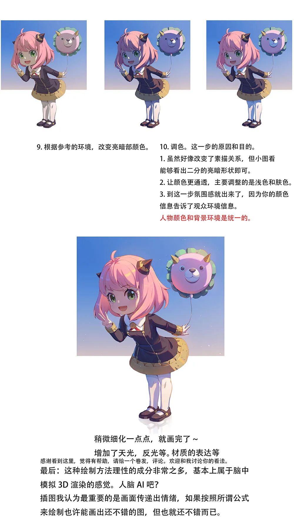 插画教程|手把手教你画可爱的阿尼亚,从线稿、打光、调色,超详细!