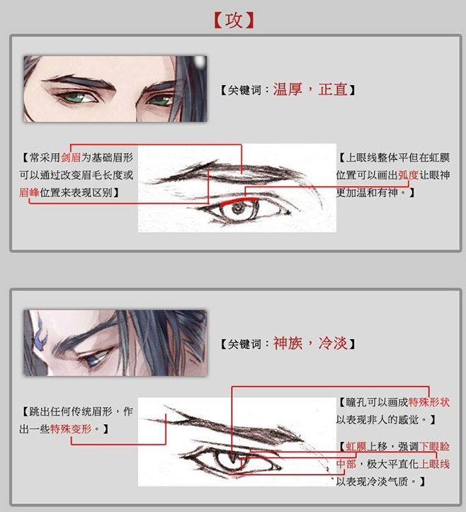 /插画教程|言情帅气男生,人物眼睛怎么表现攻受?这个厉害了!