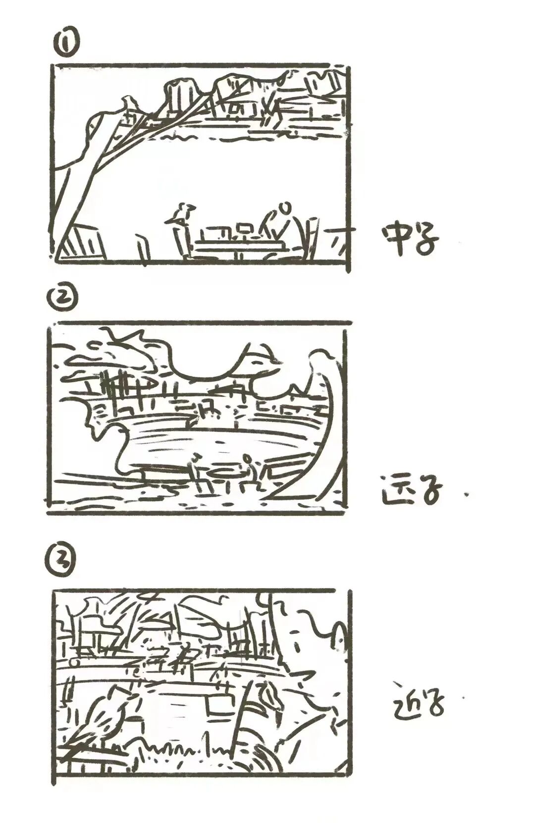 在看风景时,看到了这样的场景。重新组合把它抄下来。