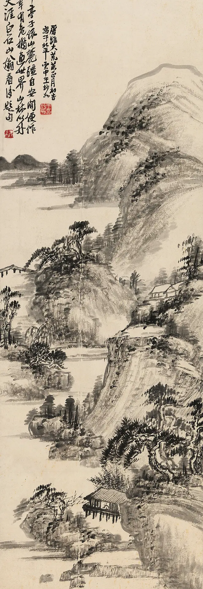 不会画中国风?没关系,先找一张水墨画抄一抄构图。