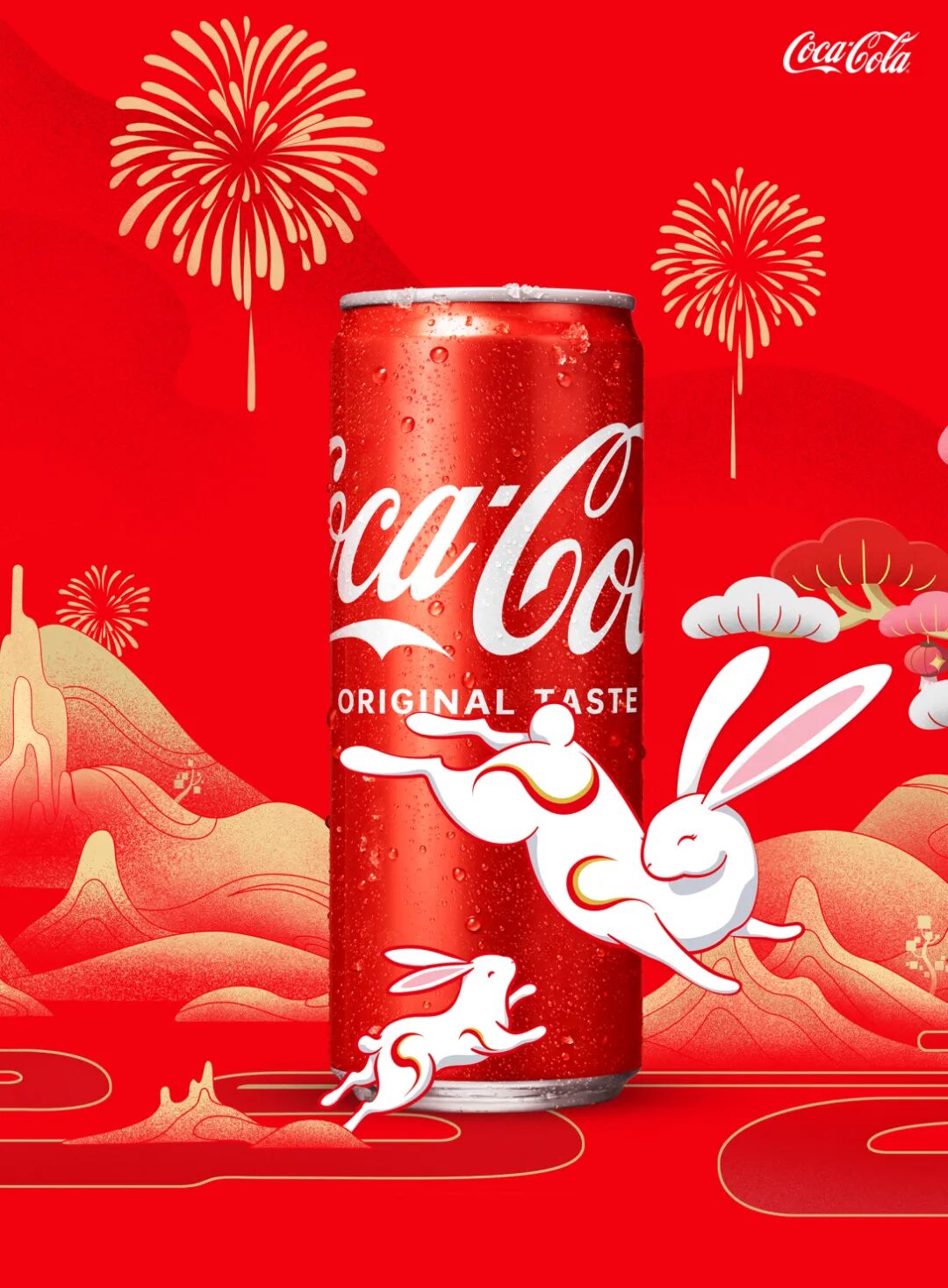 可口可乐在新春来临之际,于亚洲多个市场推出全新的多触点系列活动,其中包括推出兔年限定包装及兔年贺岁大片。