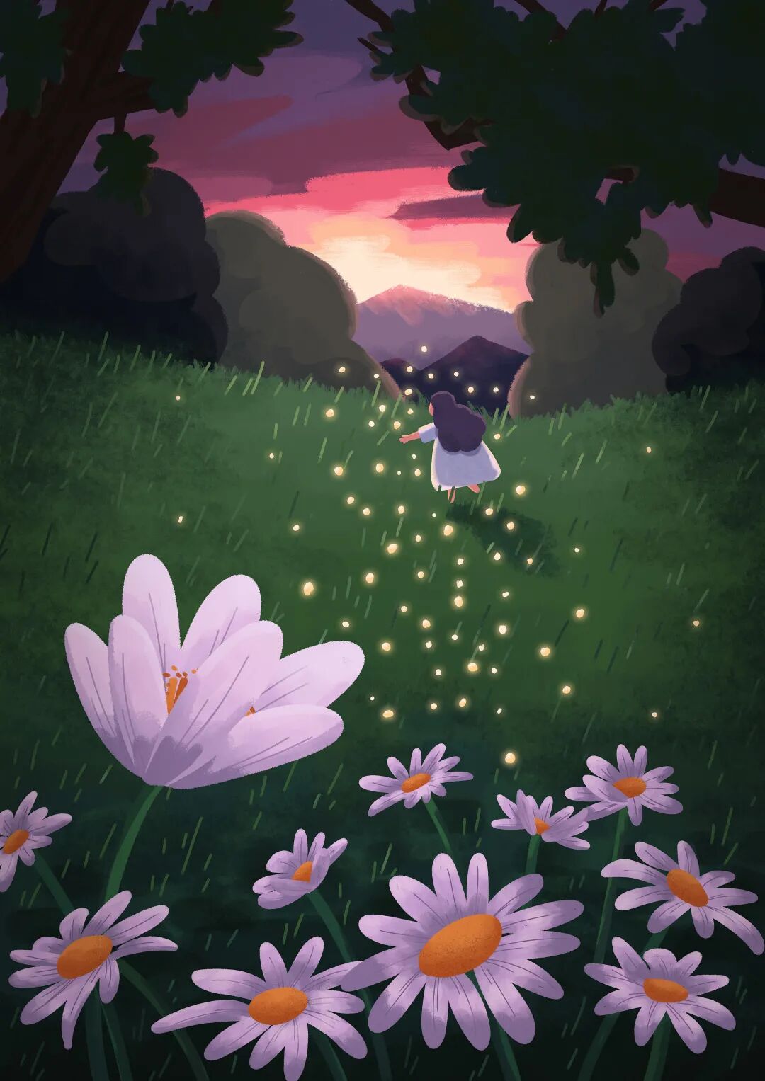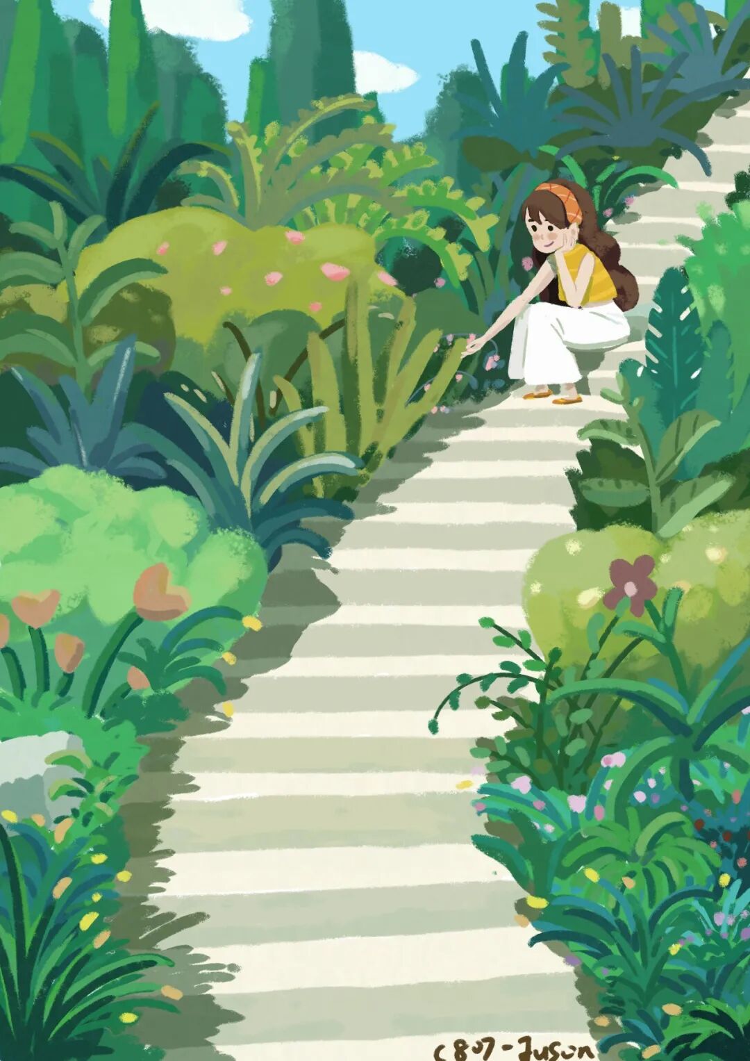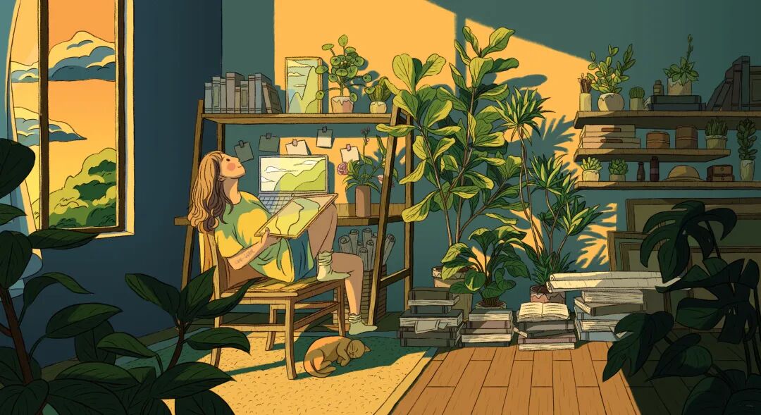 课程后期的“室内外场景”“扁平风”“绘本风”等各种画风的尝试,就是往四分五裂的插画生活里撒种子,种子掉进缝隙里,老师不知道哪颗会结出果子,但你自己肯定知道。