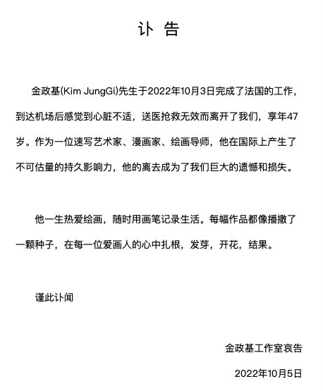 @司瓜络世奇:即使是我这种业余爱好者,也深受其影响和鼓舞的金政基,每当下笔起稿的时候就会想起金老师行云流水的笔触,那些特点鲜明的人物,告诉我这么画也是可以的,只要我还画画,就不会忘记您,这件事我会一直坚持,直到我也要去好好睡觉的那天…再见,金老师