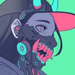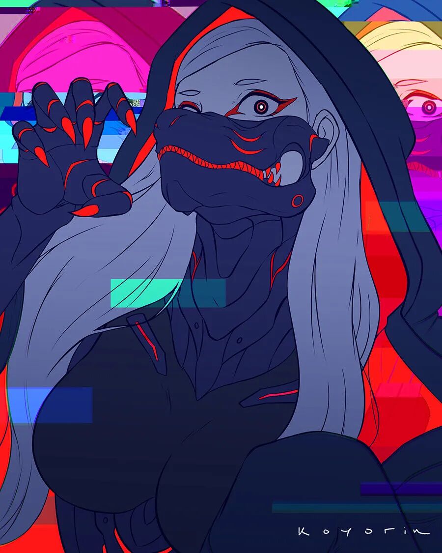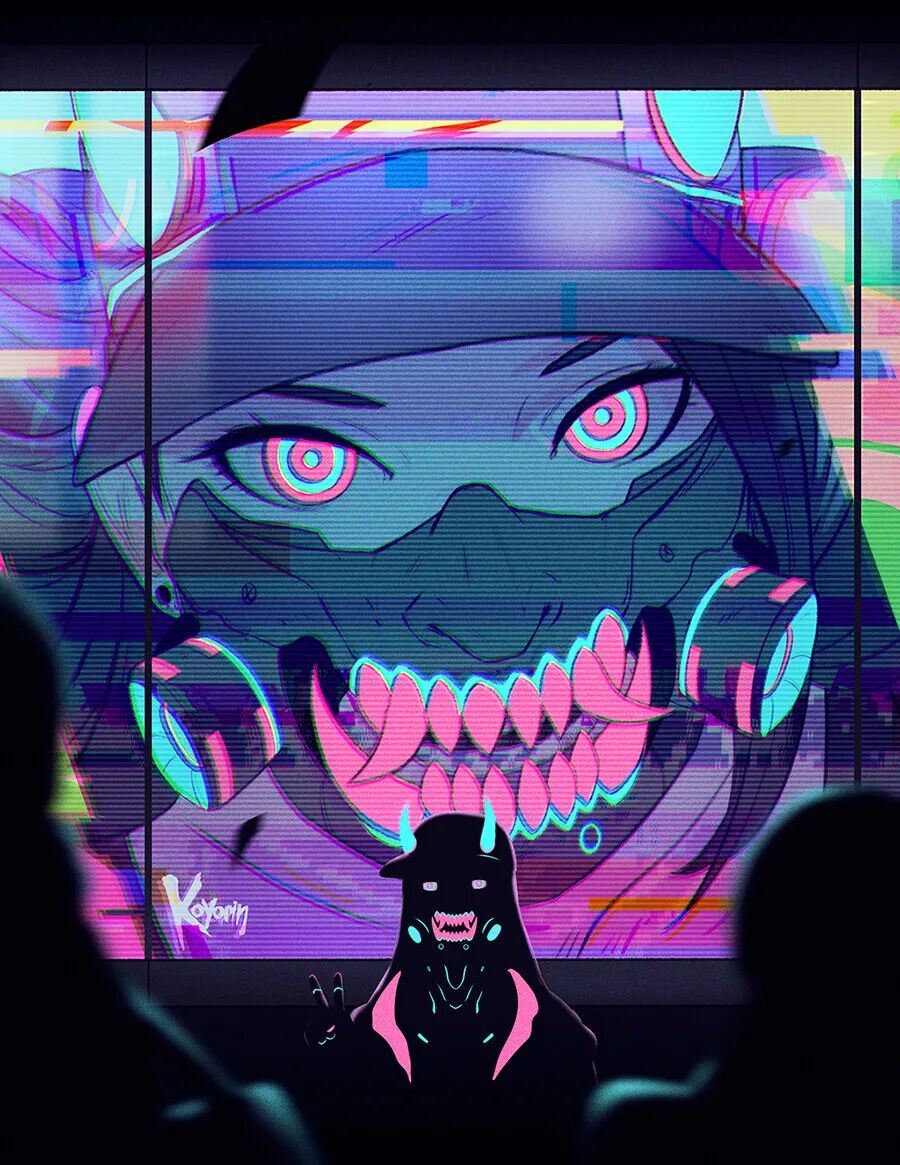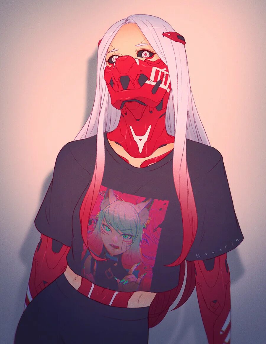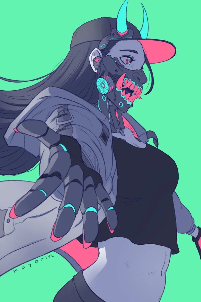 插画中的赛博朋克?日系机械鬼面搭配艳丽的色彩!实在是太帅了!-D.ROCK