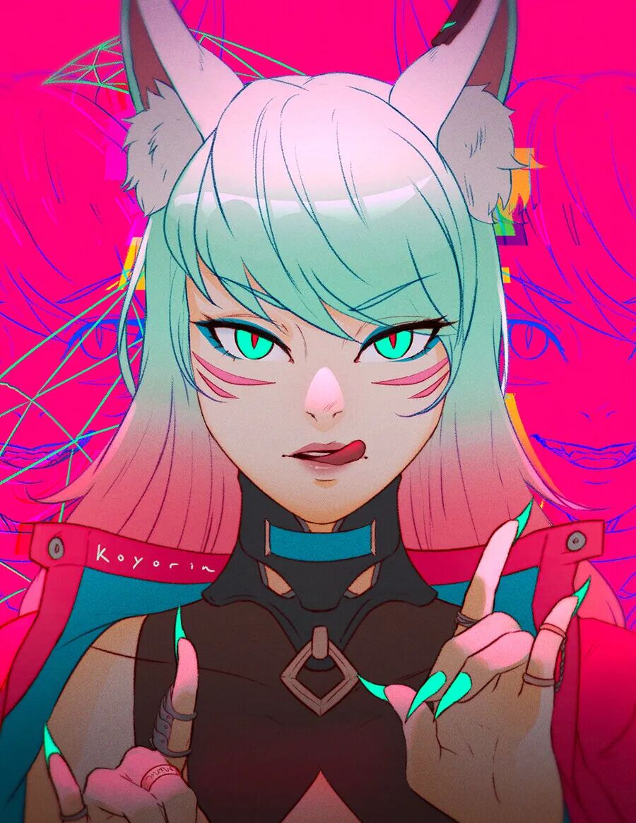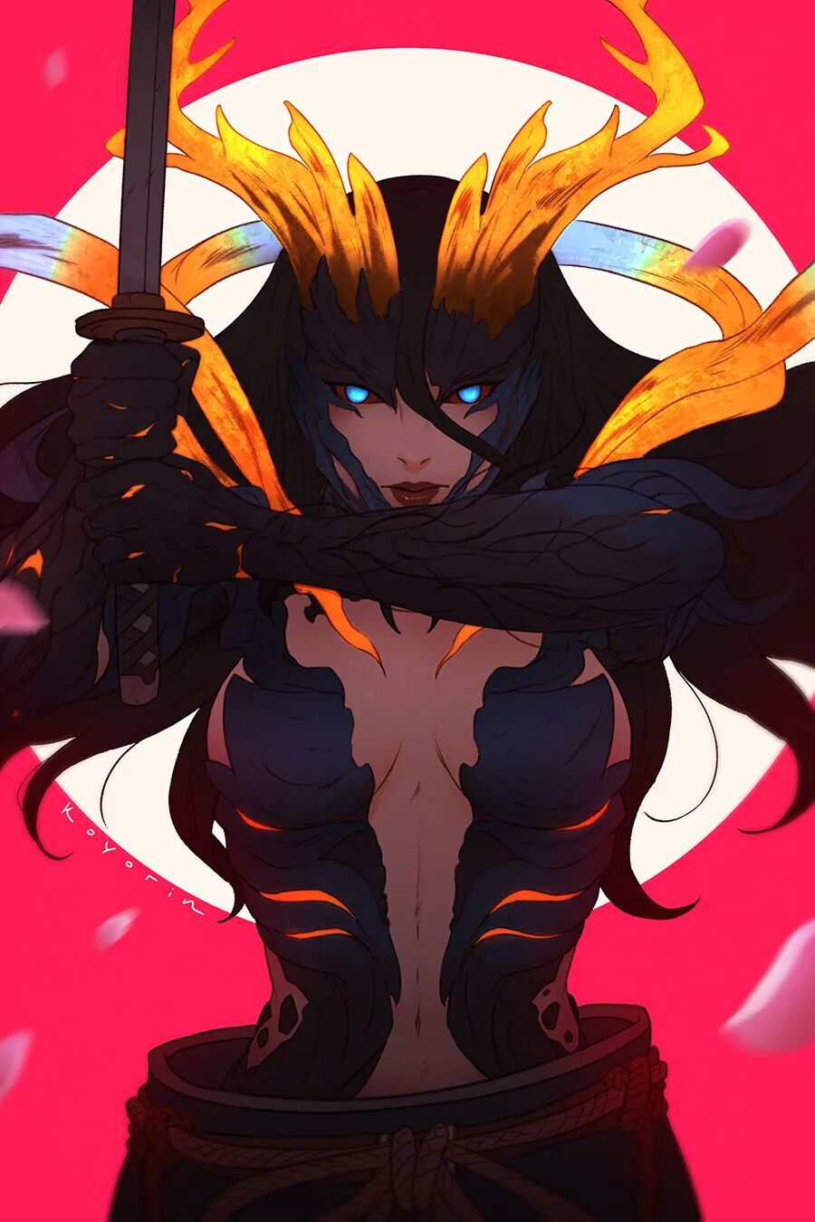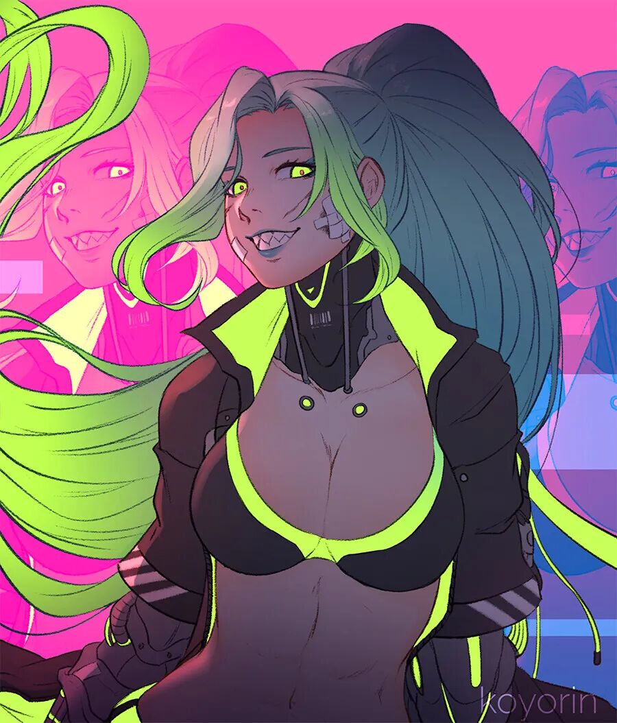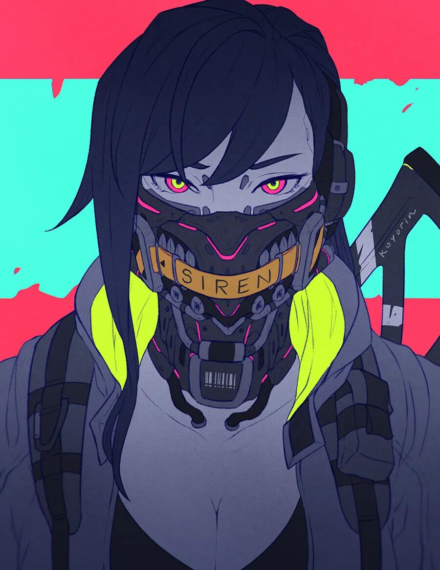 插画中的赛博朋克?日系机械鬼面搭配艳丽的色彩!实在是太帅了!-D.ROCK