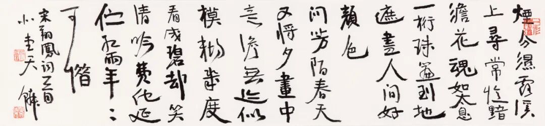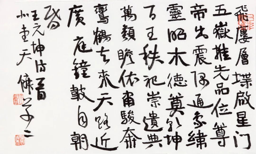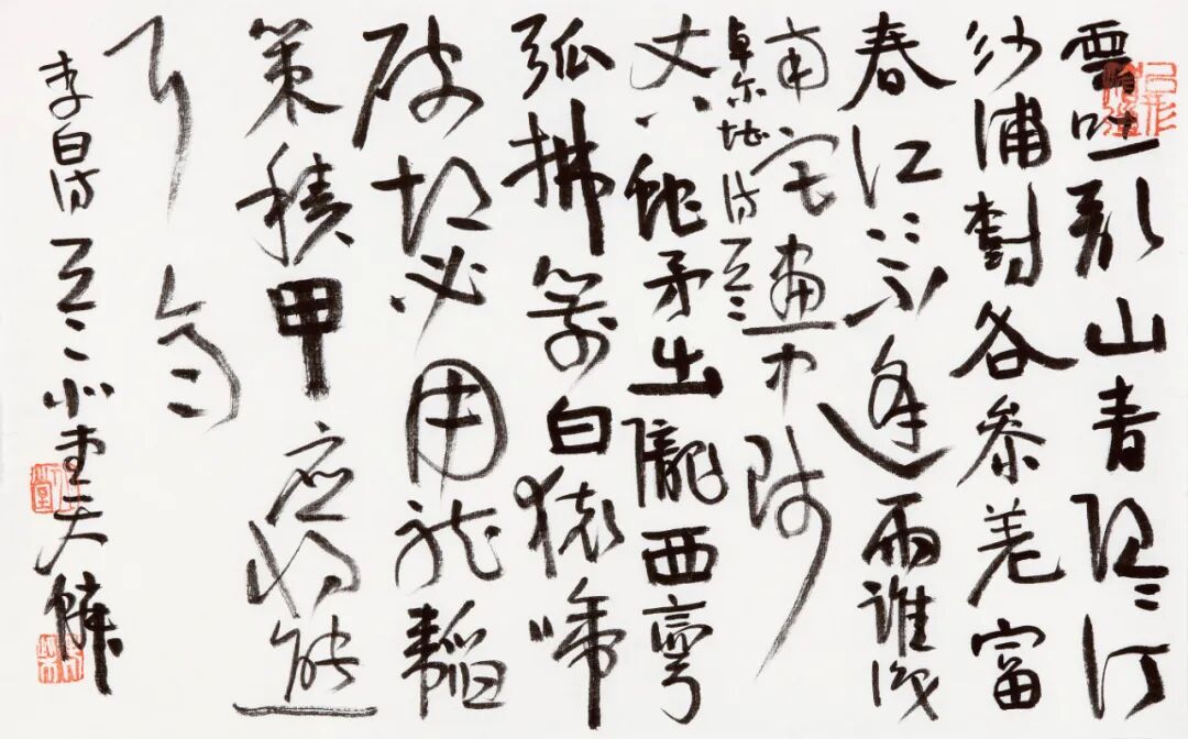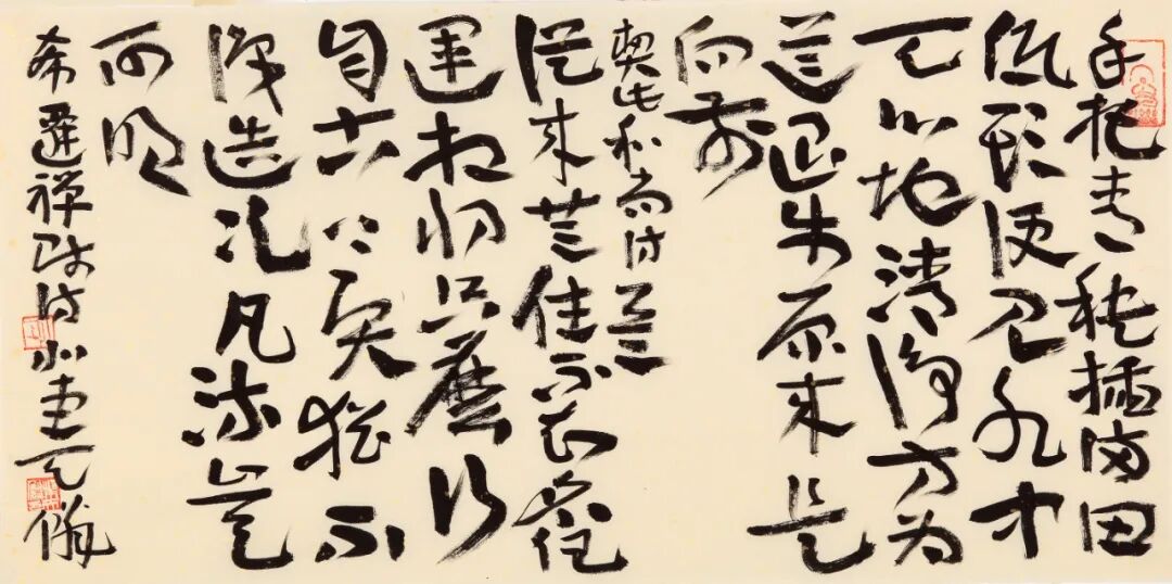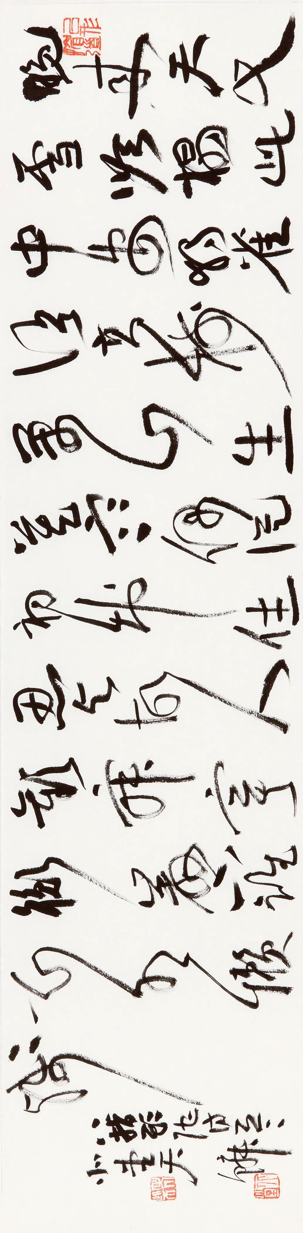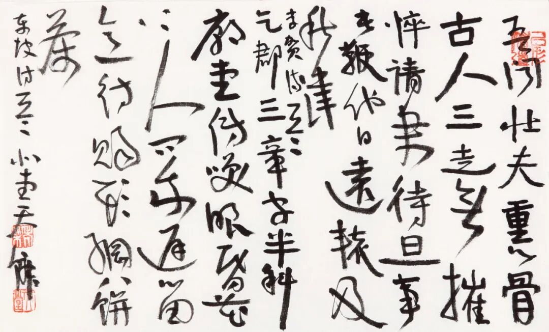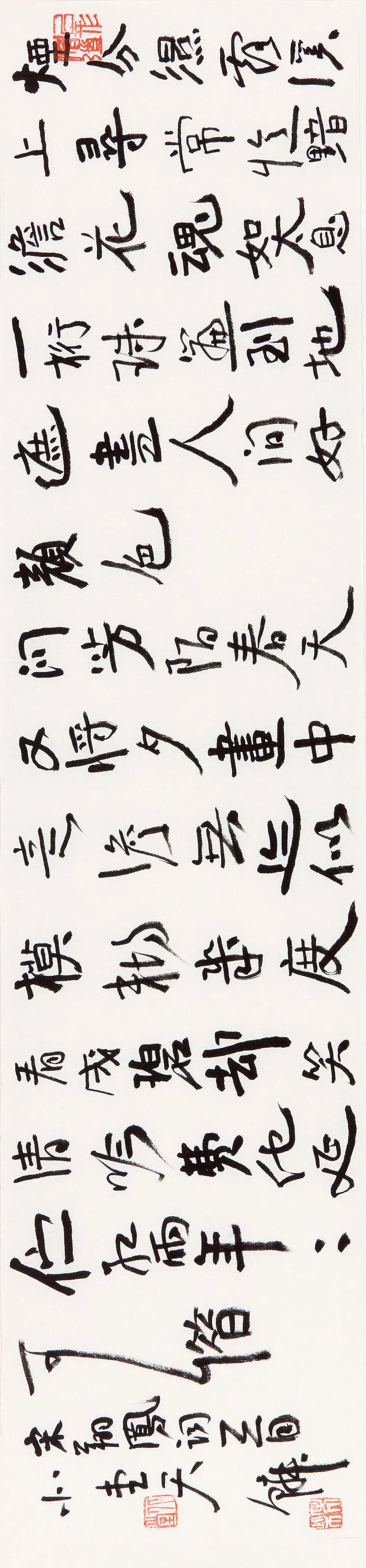 他说,书法是书自己的心法,而非他人的心法,可惜好多人已经忘了还有自己。在笔法上,他放弃了对形式最直接的追求,不那么精工,不那么直接,不追求直达目标,不那么凌厉,让自己慢下来,静下来,就是随意、自然地向前。这何尝不是一种生活方式?