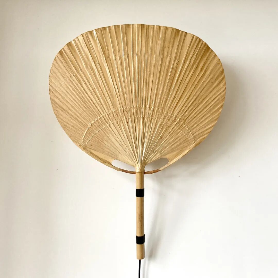 1970 年代的 Ingo Maurer Uchiwa 壁灯,由竹子和漆面宣纸制成。它具有类似于东方扇子的中世纪现代风格。