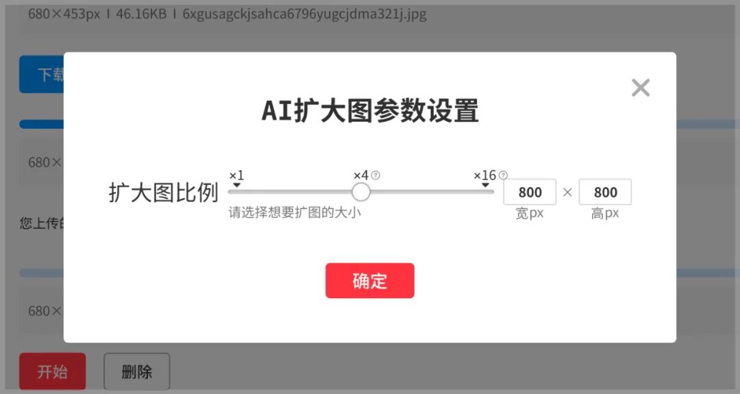 用户可以对图片尺寸进行自定义,可自行拖曳,也可输入精确数字,其中4倍、16倍可一键定位。