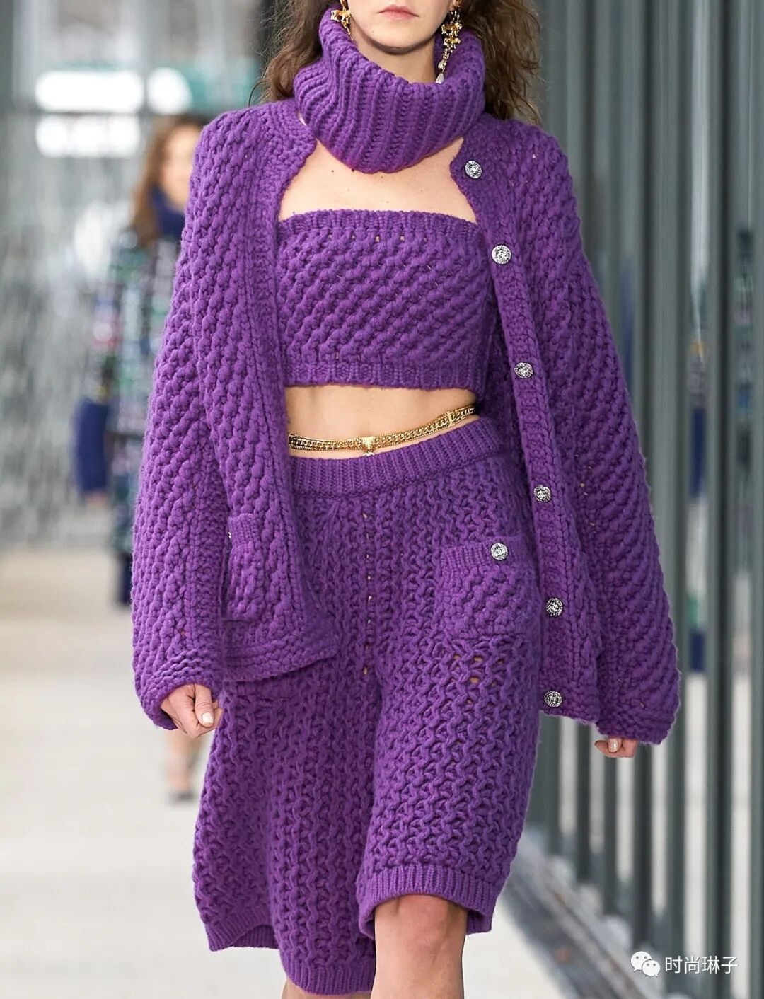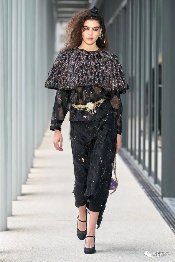 无论是三维编织的紫色短款上衣搭配裙裤,还是街头风的涂鸦刺绣,或是金银配饰等等,都体现了工匠们精益求精的技艺,以及尽善尽美的制衣艺术。