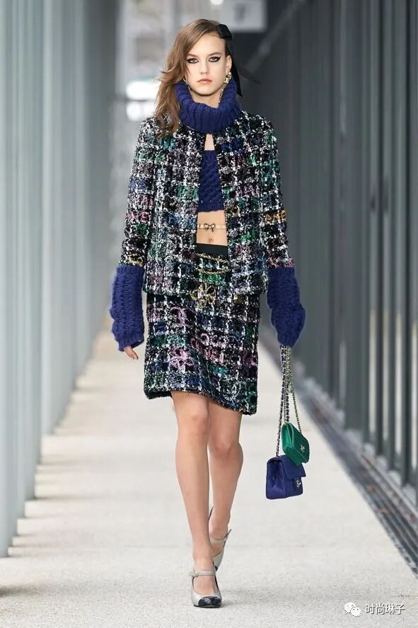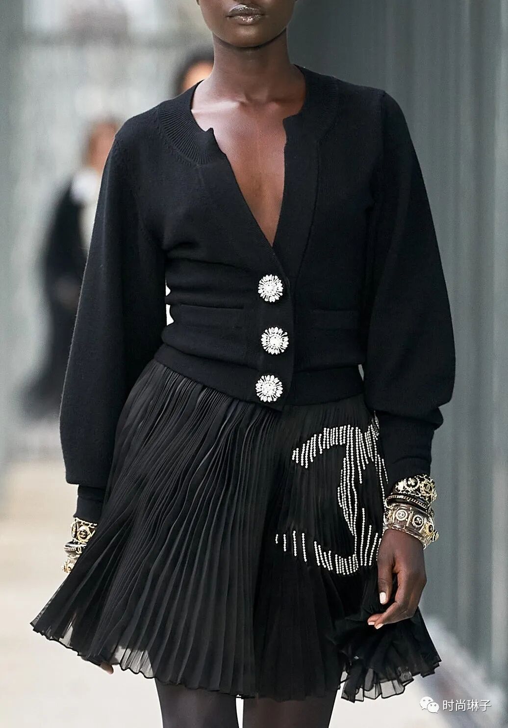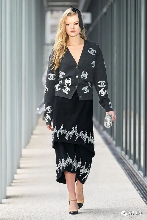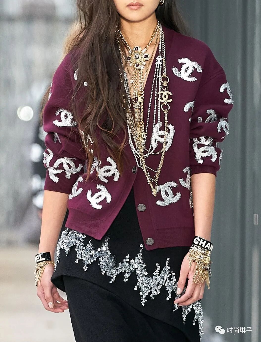 该季品牌标志性的双C logo俏皮的点缀着上衣或裙装,极具品牌辨识度。