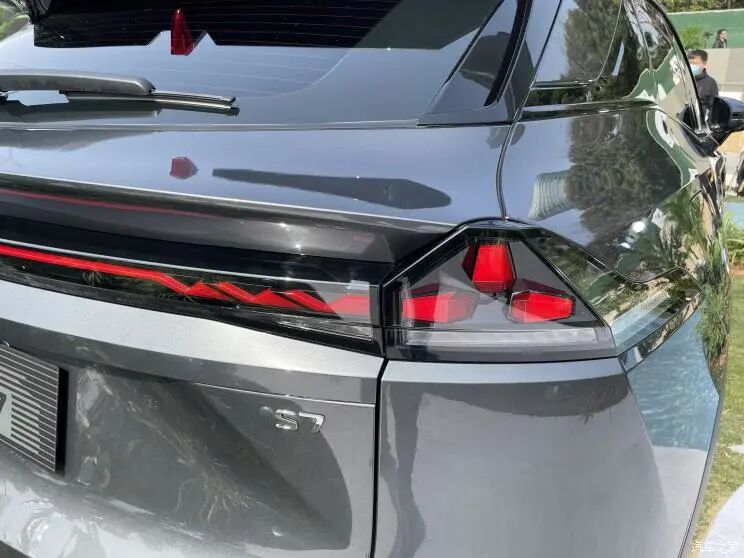 车尾方面,新车同样延续家族式设计风格,采用贯穿式尾灯设计,两侧尾灯造型十分具有辨识度。尾翼和包围也使用了黑化套件,其中尾翼还使用类左右分体式设计,车型的识别度很高。另外,此车并没有用外形来区分纯电和增程版车型(增程版车型使用隐藏式排气管),所以两种动力形式的尾部造型也完全一样。