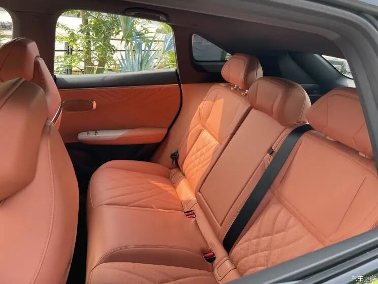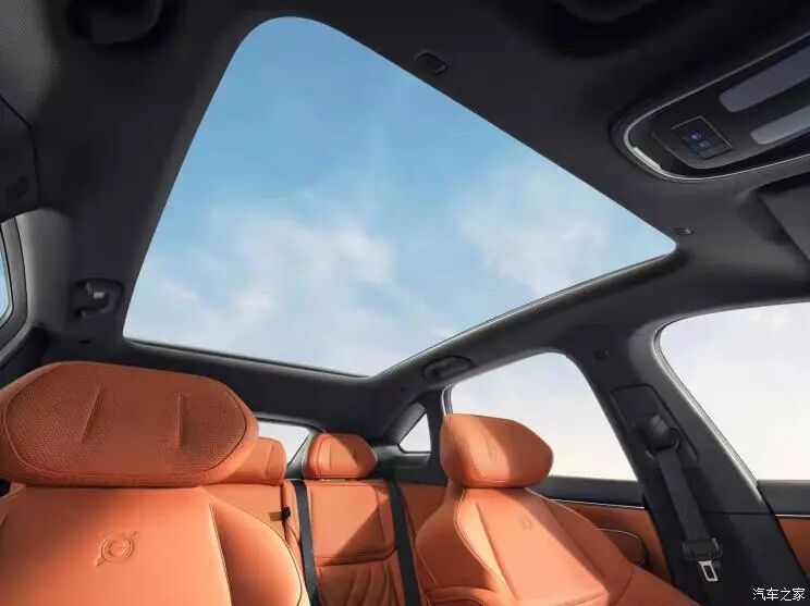 内部的配置非常豪华,前排副驾驶座椅具备腿托,安全带固定在椅背上,看得出来是要讨家里“女王”的欢心。并且搭载全景式天幕,车内的采光度不错。