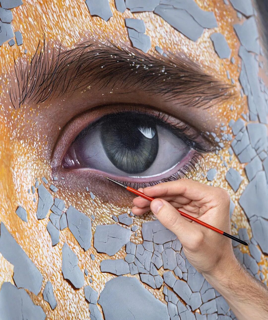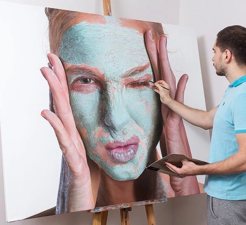 如今,绘制常规事物在这位艺术家的眼中,已经有点小儿科了,他开始给自己上难度了,绘制人像有什么意思?这位艺术家干脆画起了敷着面膜的人像,谢尔盖·皮斯库诺夫画出了泥状面膜在人脸上,慢慢变干并开裂的真实状态,让人忍不住感叹,画得太真实了。