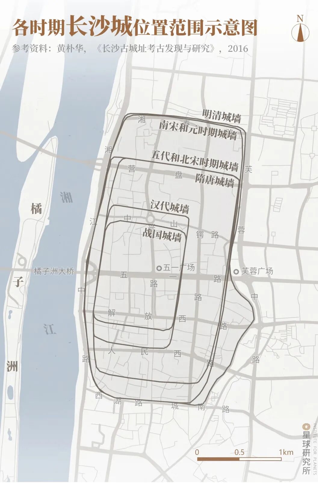 历史各时期长沙城位置示意图 © 制图:郑艺/星球研究所