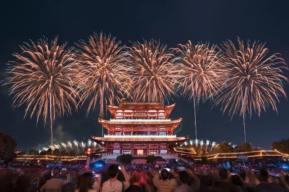 长沙杜甫江阁橘子洲烟火,是每逢节日时一道亮丽的风景。© VCG