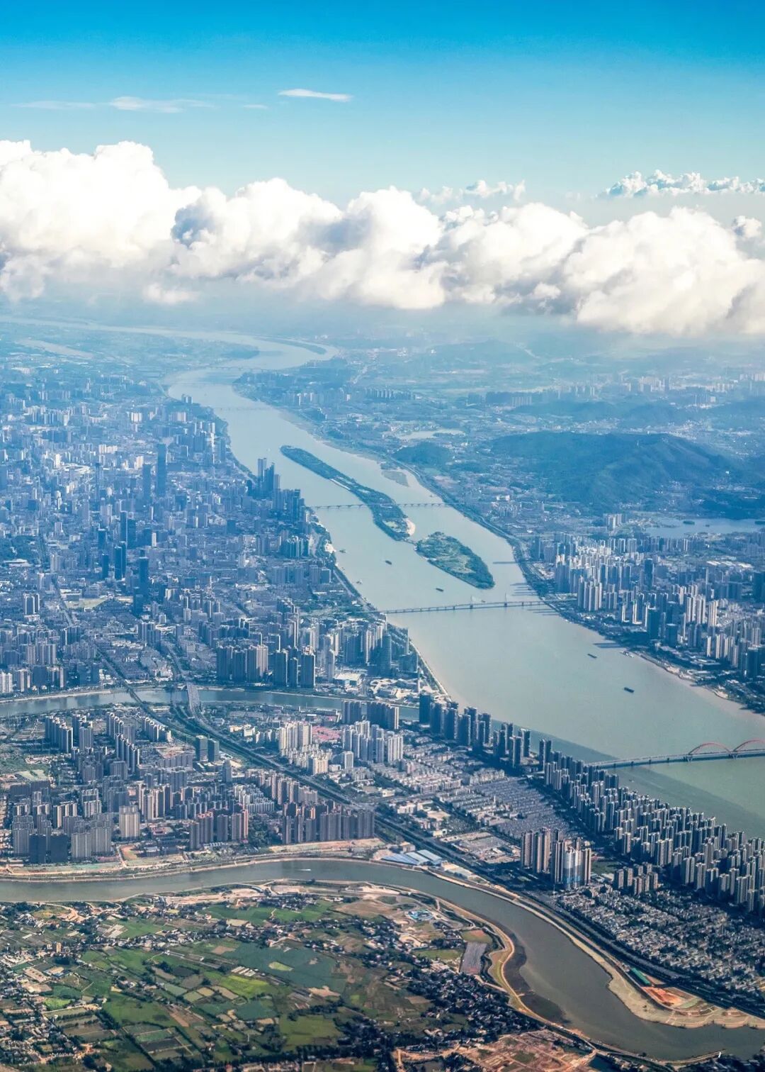 湘江下游流速较缓,泥沙在河道中沉积形成沙洲,其中最大最长的一条江心洲,因长有橘树而得名——橘子洲。书声朗朗的岳麓山,光影流动的湘江两岸,焰火盛放的橘子洲头,一山一水一洲,构成了长沙特有的城市符号。