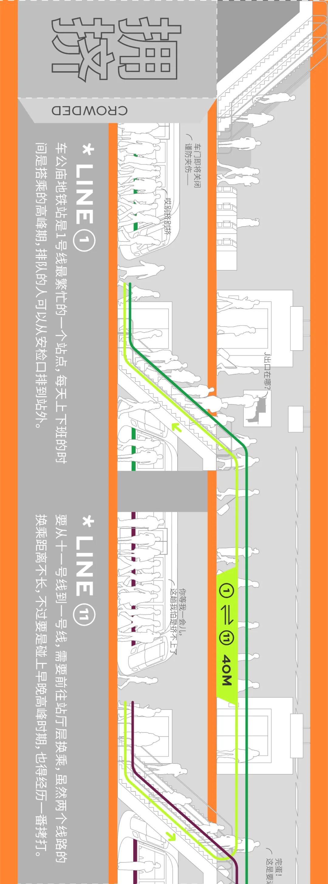 在这里,有提着行李匆忙经过的旅客,也有每天都在此辗转的上班族……各色的人们在这个空间里交汇,步履不停地赶往下一个地点。