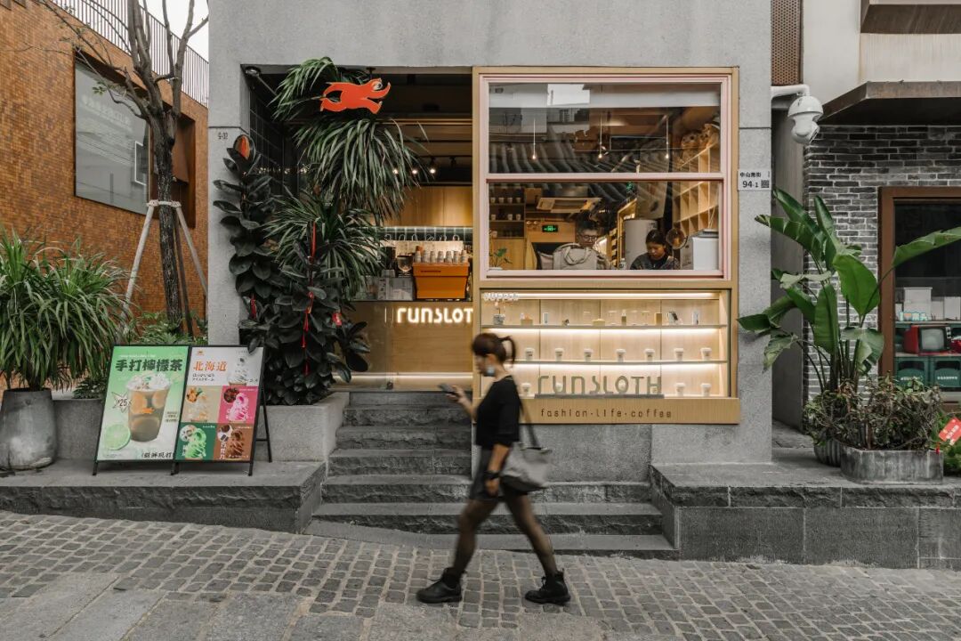 坐在B IN HOUSE这个闹中取静的咖啡店,不管古城的周末人流如何汹涌,你都能偷得一份清净,但对于咖啡店运营来说,过少的人流可不是一件好事。而坐落于古城主街道十字路口位置附近的RUNSLOTH树懒咖啡,因其空间较小,则更显得热闹。如何在高峰时段以有限的空间将不间断的客流安置妥当,他们用外摆的露营桌椅做出了回应,也收到了热衷露营风的消费者满意的反馈。