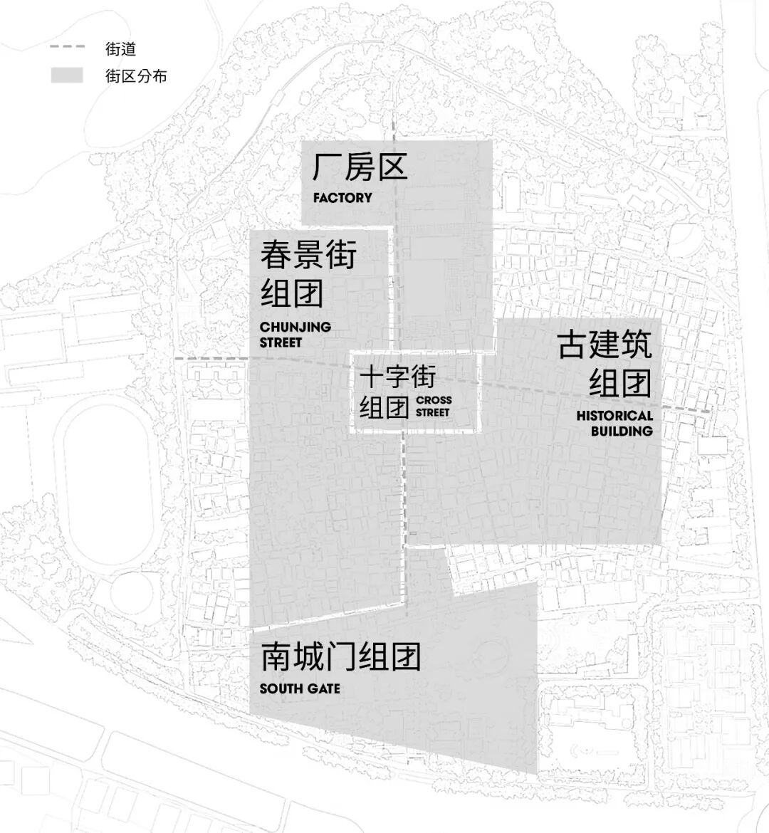 第一阶段,城市再生。通过规划,南头古城由南向北,再向东西延展为五个板块:南城门组团、十字街组团厂房区、古建筑组团、春景街组团。在重点公共空间改造的同时,也注重公共活动的引入。