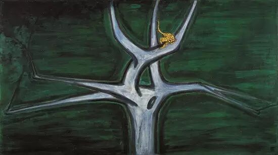 豹栖巨木 木板油画 76.2X130.7CM 1950-1960年