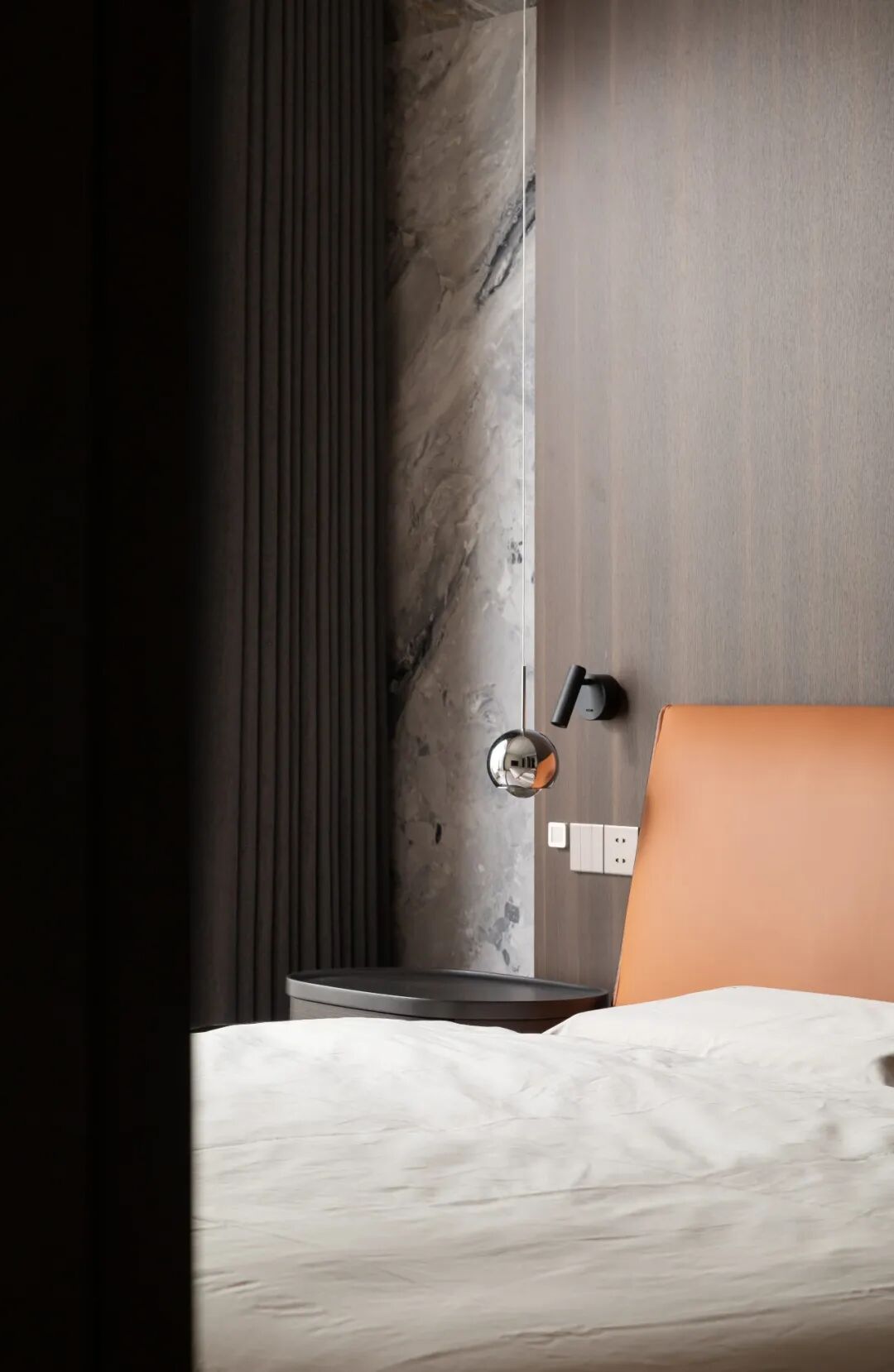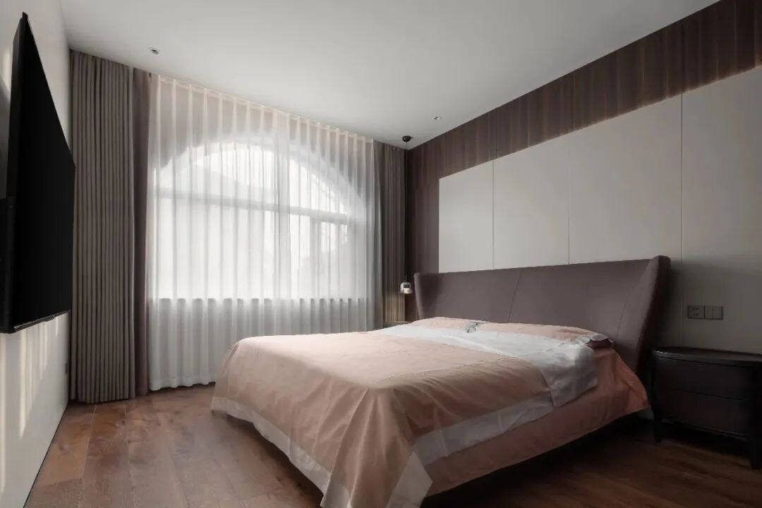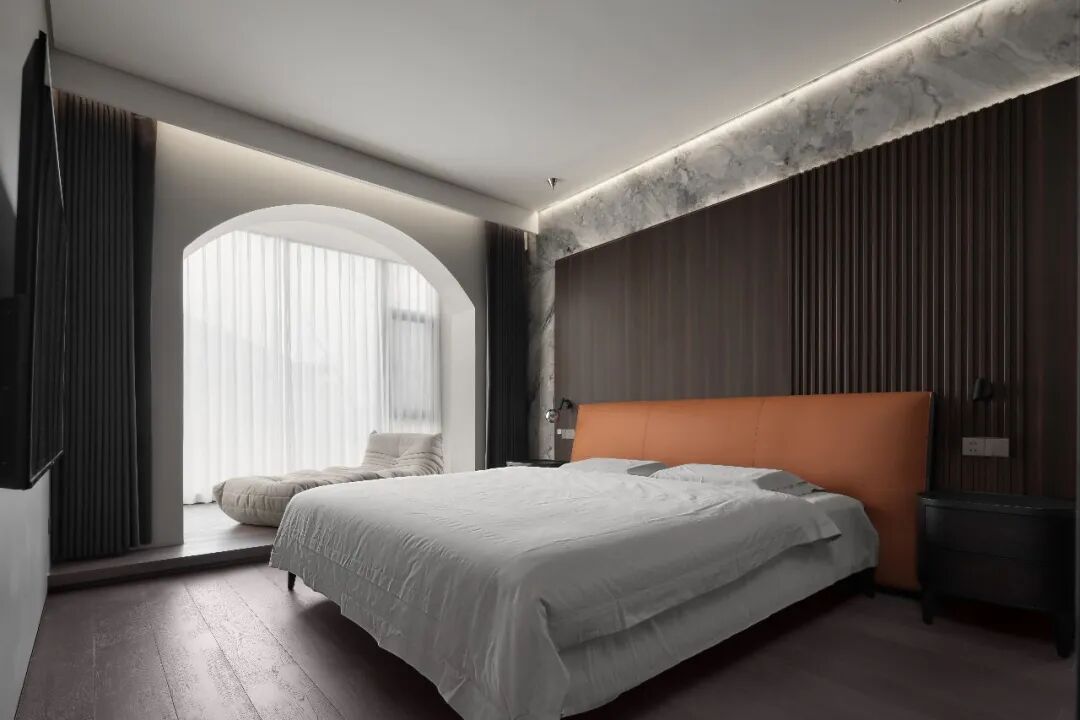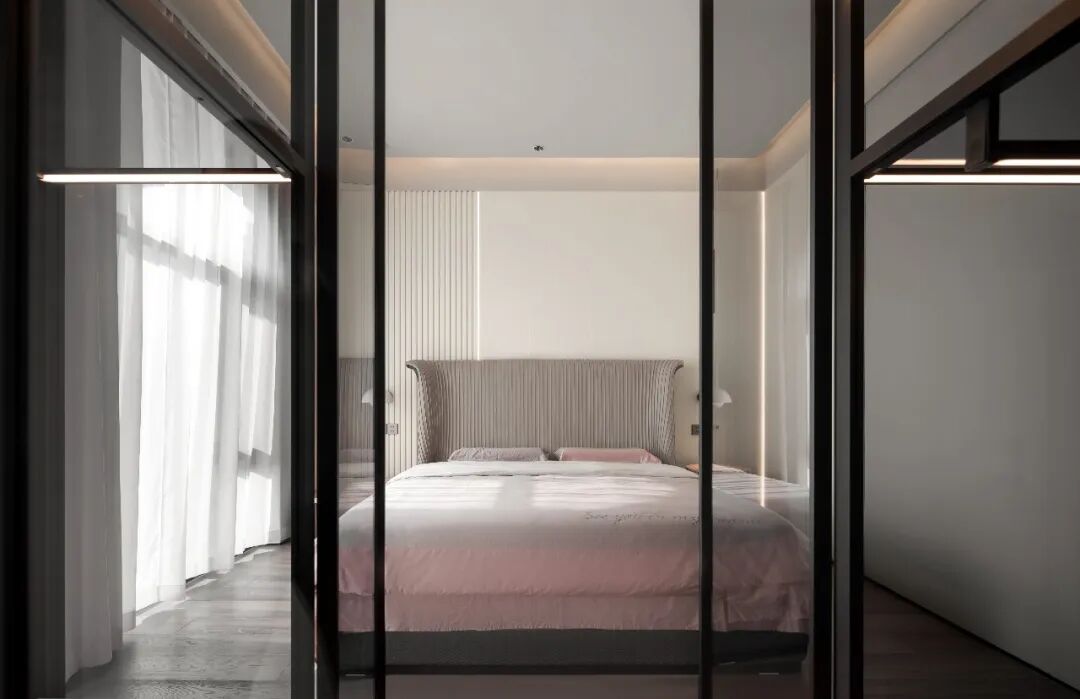 卧室的设计意旨在平衡开放与隐私、阳光与阴影的结合。空间因简洁有序而安宁,开放的生活空间和卧室的隐静形成了一种克制的舒适。