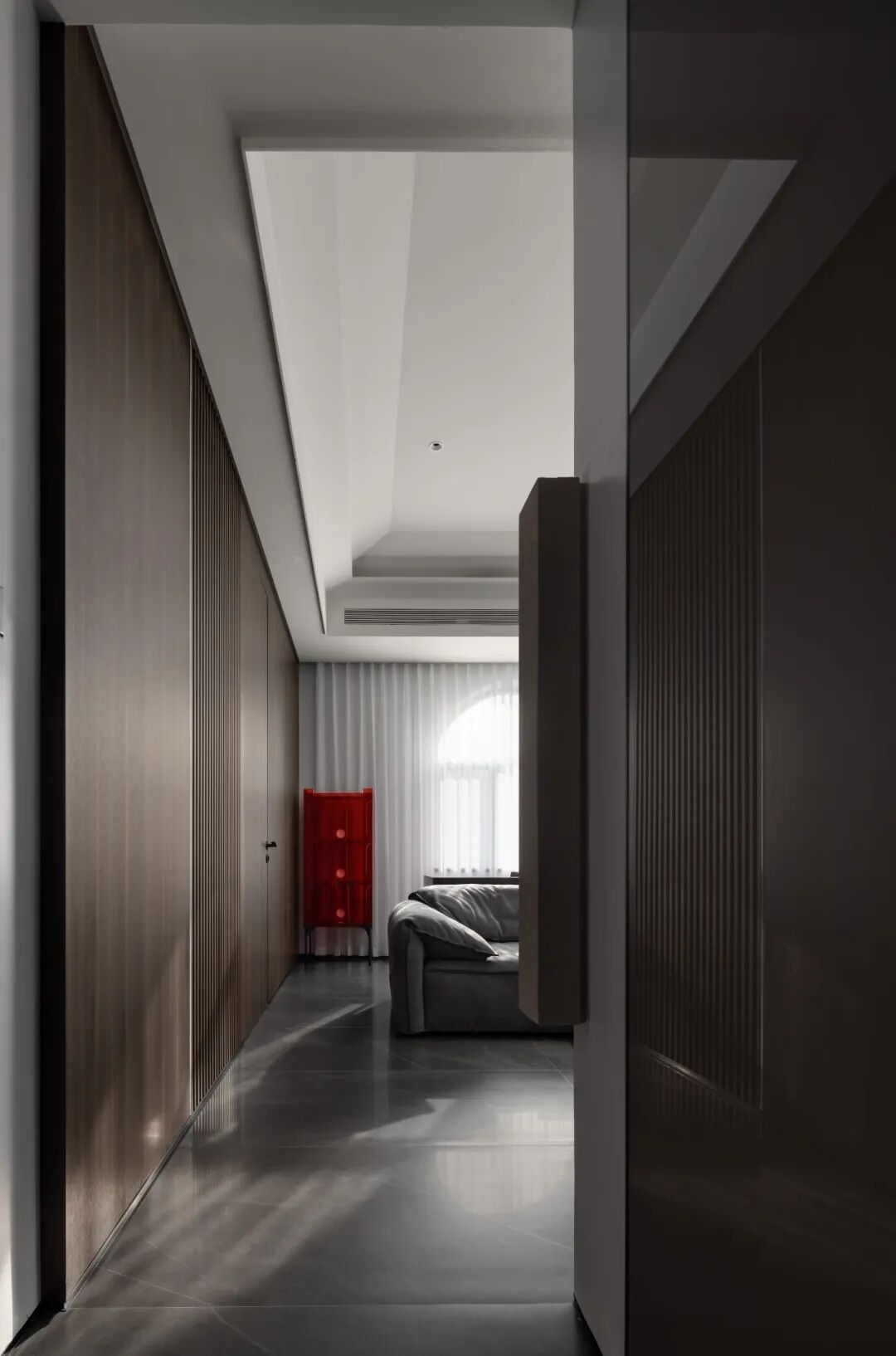 在隔而有通的空间中,营造隐而有现之美。意在调和内外和谐沟通,让一室可纳多种情怀。向外是链接世界的格调,写意出居住者的雅尚审美;向内是对话初心的镜像,投射出身居繁华意向闲适的归情。