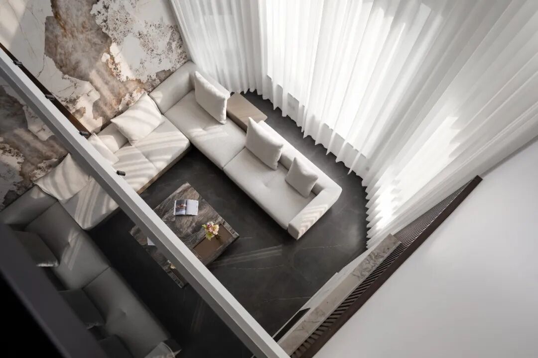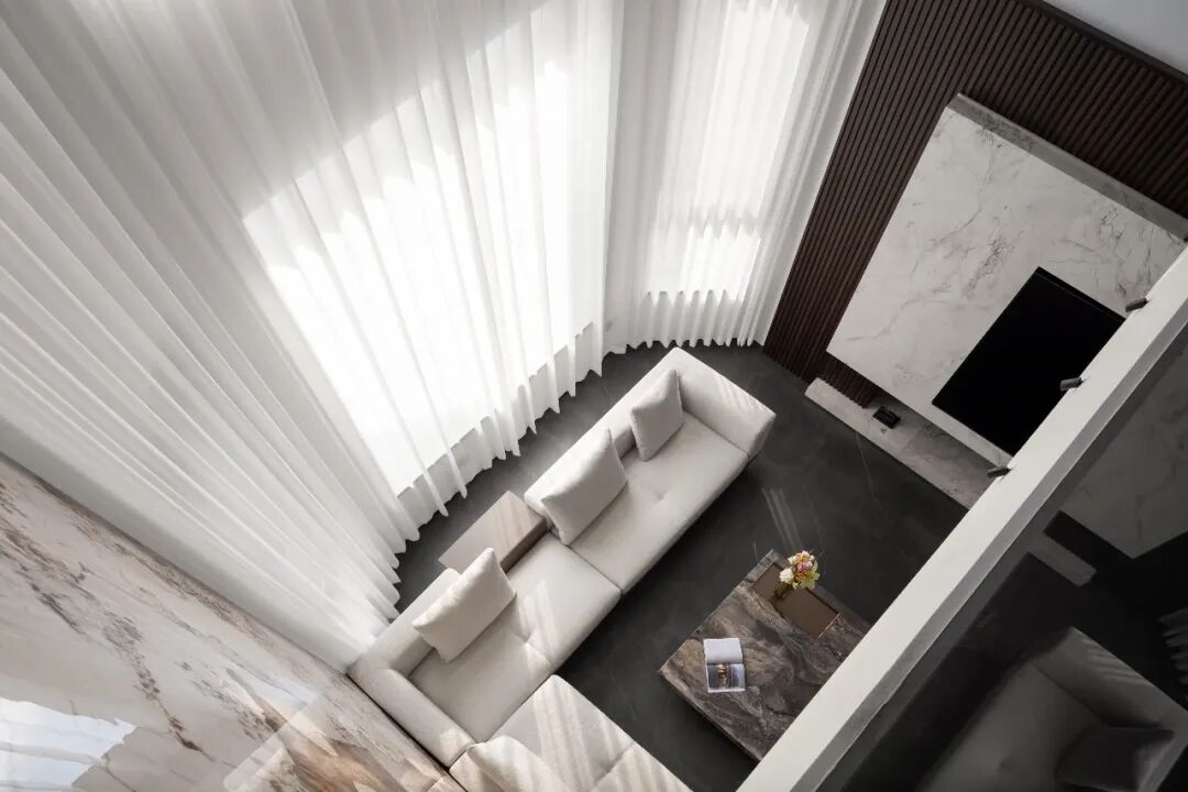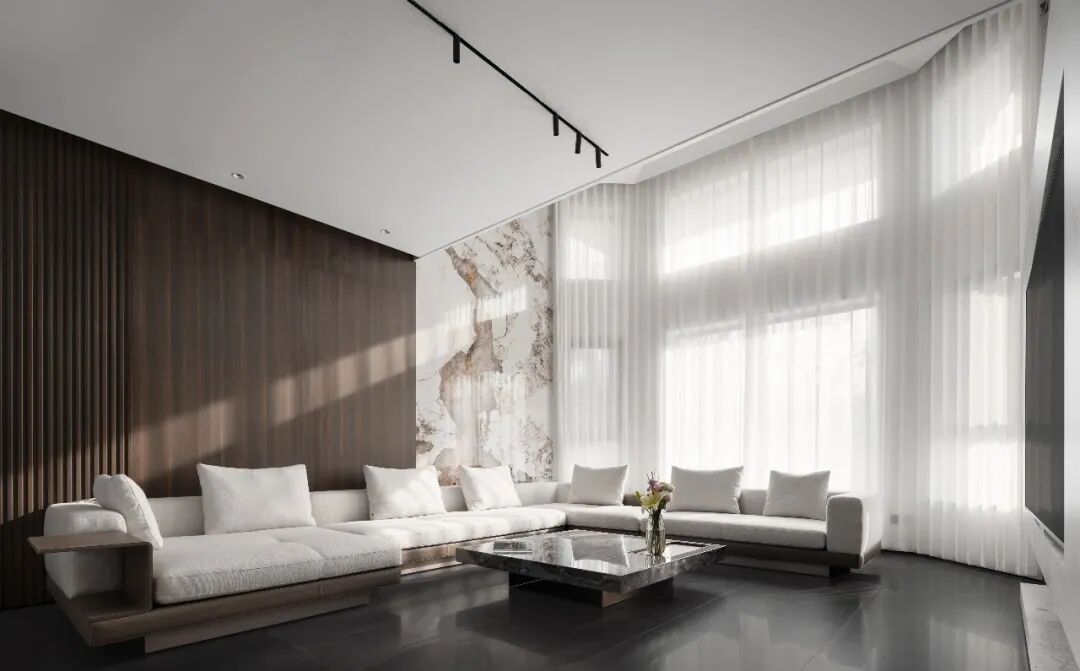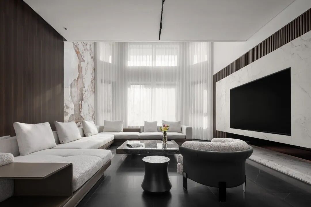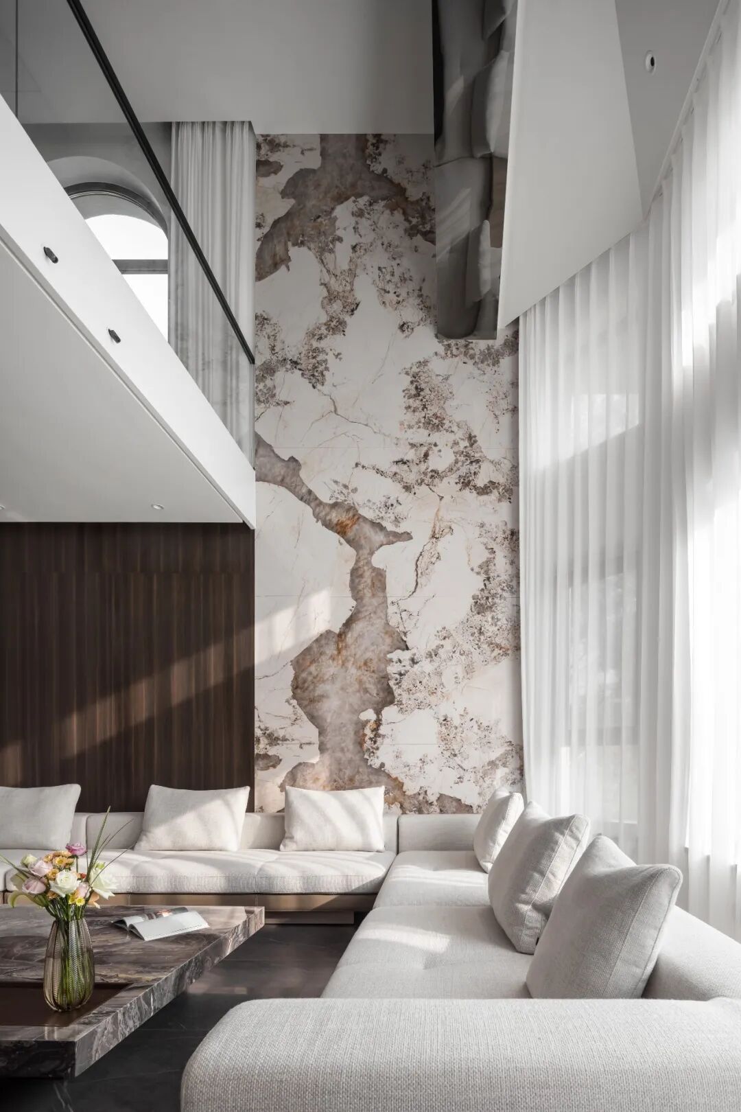 现代极致的艺术性情,领衔不落于时尚潮流的摩登,又始终不离诗意东方的基因启蒙,自成小隐于市的桃源情结。白色系布艺的品位,无主灯的取舍,造物天成的雅意,自然光影四时各怡情,使人剔除世间浮躁,遁入简意与安闲。